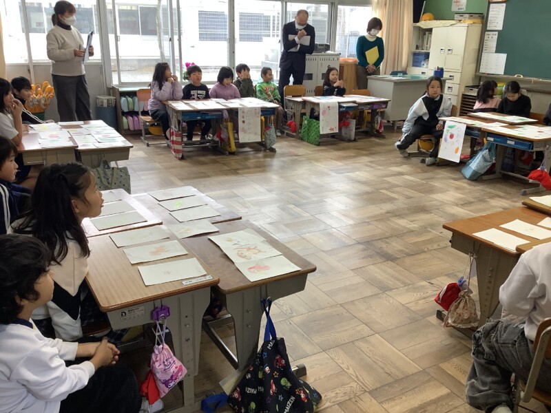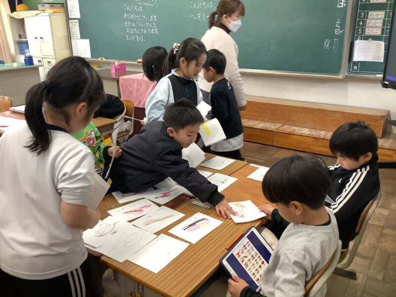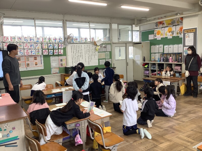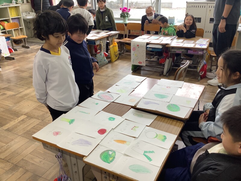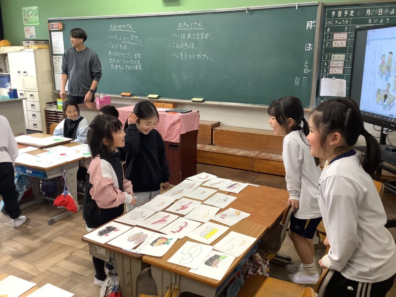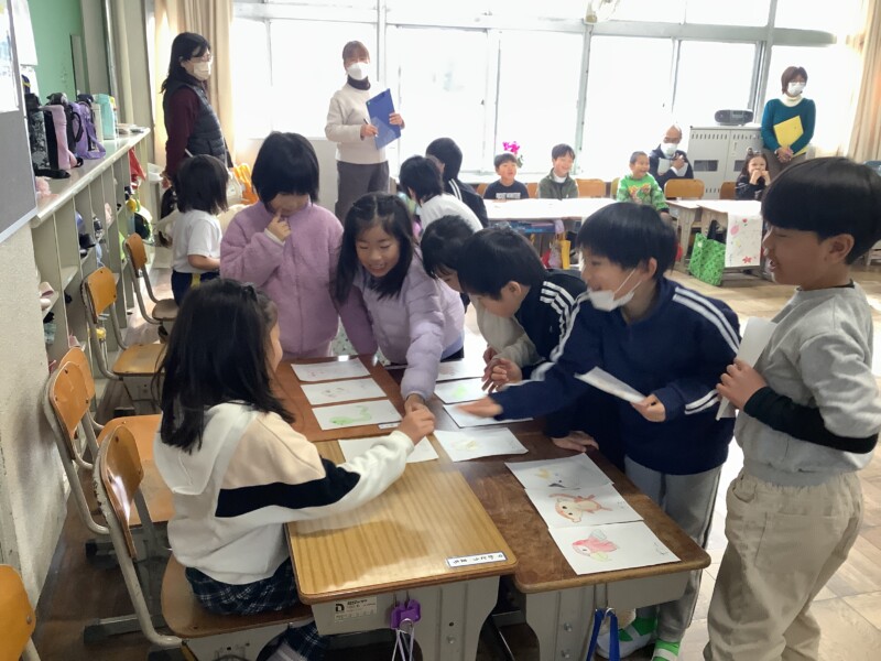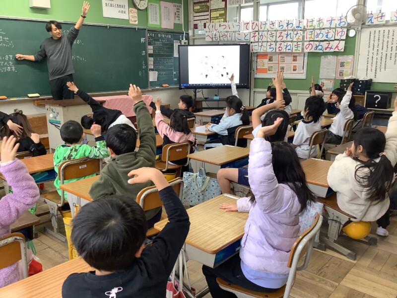 1月 29 2026 お店屋さんごっご《国語:ものの名まえ》〈1年生〉 1年生は国語の学習「ものの名まえ」で、お店屋さんごっこを行いました。子どもたちは店員さんになって「いらっしゃいませ!」と元気に呼びかけたり、お客さんになって「〇〇を1つください」と伝えたりしながら、楽しく学びました。中には「まいどあり!」と笑顔で答える子もいて、教室はとてもにぎやかでした。こうした活動を通して、ものの名前を正しく使うことや、相手に気持ちを伝える言葉のやり取りを学ぶことができました。言葉でつながる楽しさを感じた、あたたかな時間になりました。
