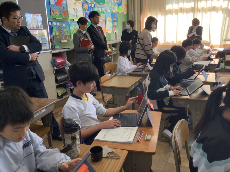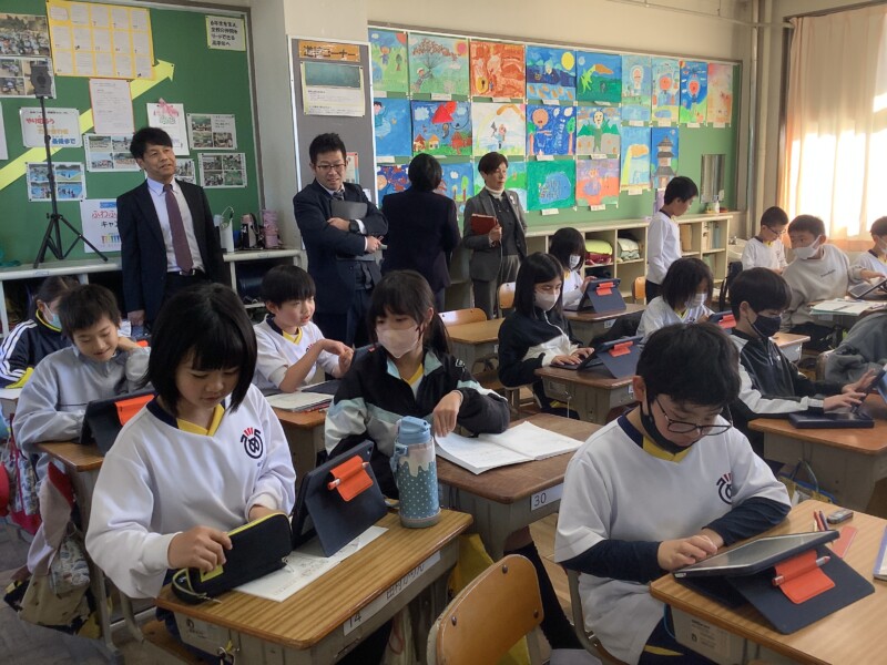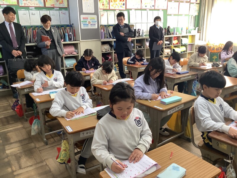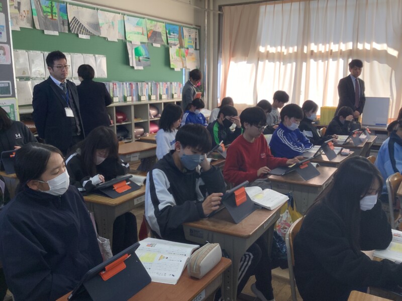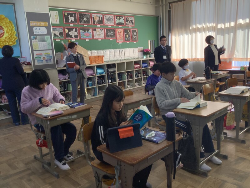あいにく本校の2年生・3年生はインフルエンザ等の影響で学年閉鎖中でしたが、他の学級を参観していただき、落ち着いた学習姿勢や仲間と協力する様子、真剣にまとめに取り組む姿などを褒めていただきました。