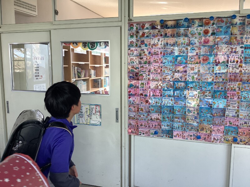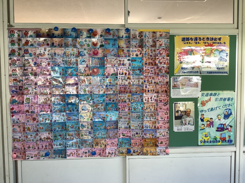 3月 04 2026 15年分の歴史〈交通安全ポスター〉 交通安全協会の相羽さんが、15年間にわたり毎月描き続けてこられた交通安全ポスターの一覧を、あいさつ通りの先に新しく設けたコーナーに掲示しました。相羽さんは、2009年から一枚一枚心をこめて制作され、2022年からは交通標語も添えて届けてくださっています。今月も、3月分の新しいポスターを学校に届けてくださいました。長年にわたる継続と温かな思いに感謝しながら、多くの子どもたちが相羽さんの作品にふれ、交通安全への意識をさらに高めてくれることを願っています。