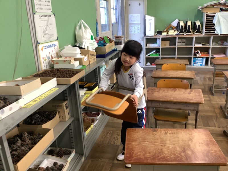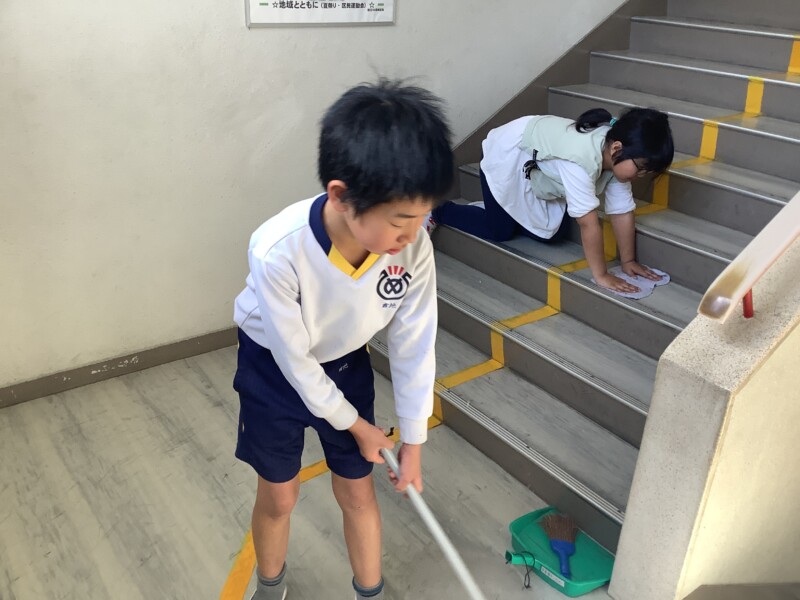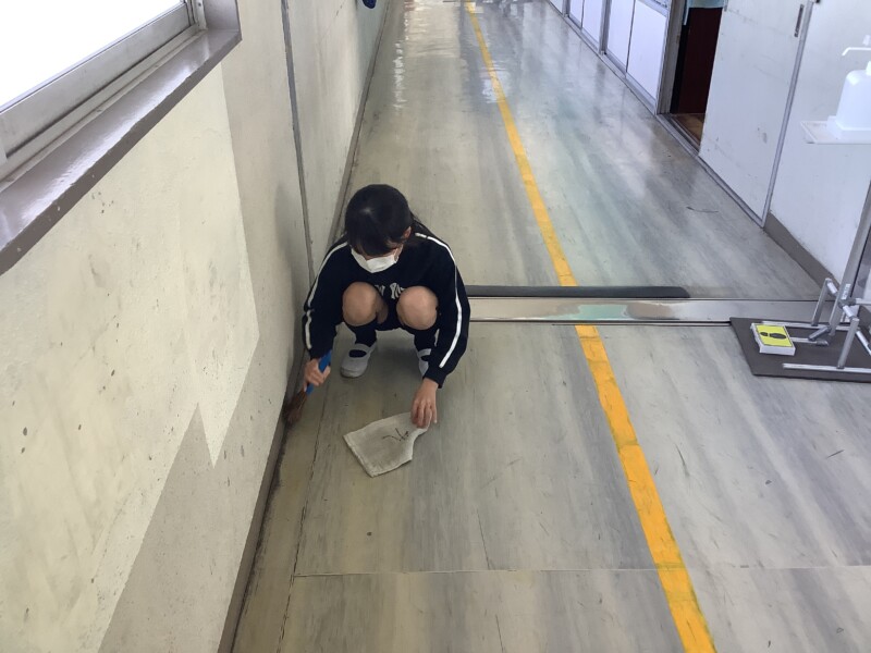 3月 16 2026 大掃除をしました!〈全校〉 今日は全校で大掃除を行いました。1年間お世話になった教室や廊下に感謝の気持ちを込めて、いつもより丁寧に掃除をする子どもたち。机や椅子を運び出し、隅々まで念入りに磨く姿がとても頼もしく見えました。学級閉鎖が明けた6年生も元気に参加し、一緒に学校をピカピカにしてくれました。放課後には先生たちでワックスがけを行い、床はつやつやと光っています。新しい年度を気持ちよく迎えられそうです。まだまだインフルエンザが流行しています。健康に気をつけて、うがい・手洗いをしっかり続けましょう。