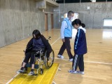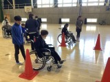 12月 15 2025 6年生 車いす体験 6年生は今までに、福祉の学習でいろいろな福祉体験をしてきました。今回は車いす体験をしました。車いすの乗り降りや、その補助の方法を学びました。段差や坂に怖さを感じたり、車いすを押すには力が必要だったりすることを経験できることができました。車いすを使って生活する人々への理解を深めることができました。