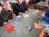 1月 20 2026 地域ふれあいクラブ 手品 今日はクラブの日でした。地域ふれあいクラブでは、地域の手品名人に来ていただき、手品のグッズを一緒に作りました。折り紙を使った手品と、プラスチックコップを使った手品の二つを教えていただきました。お手本の手品を見せていただいた瞬間、「あれ?」「不思議だ!」と歓声が上がりましたが、手品の仕組みを教えていただくと「ああ、そういうことか。」とよくわかったようです。実際に作って、家族や友達に手品を披露する予定です。次のクラブが楽しみです。