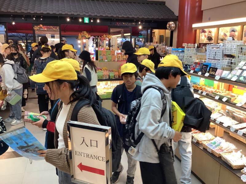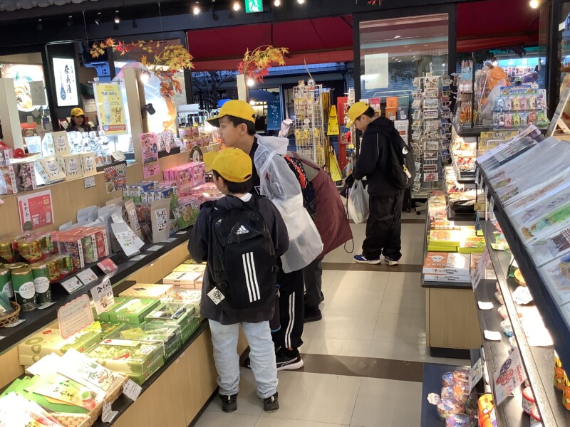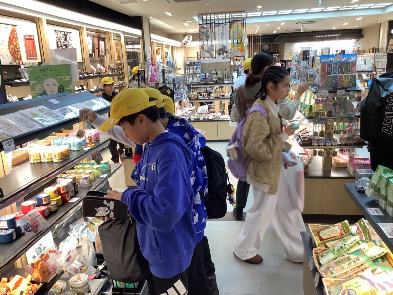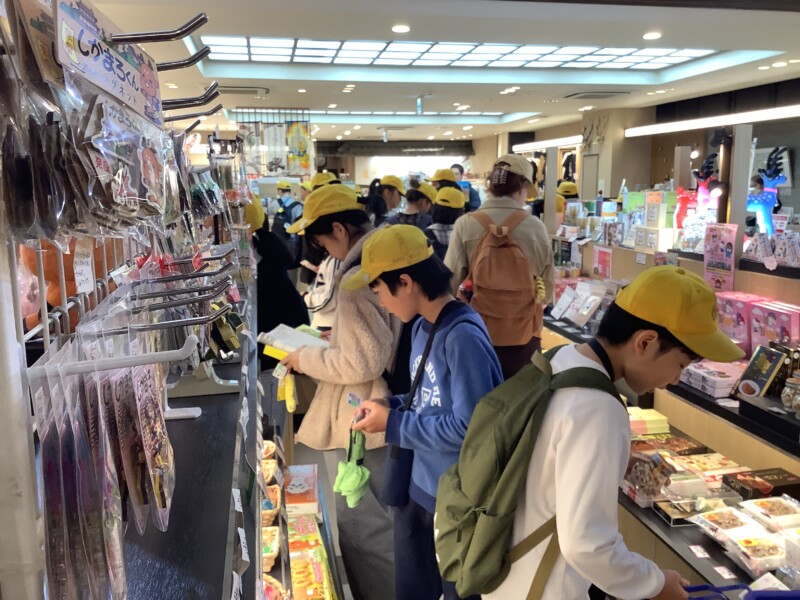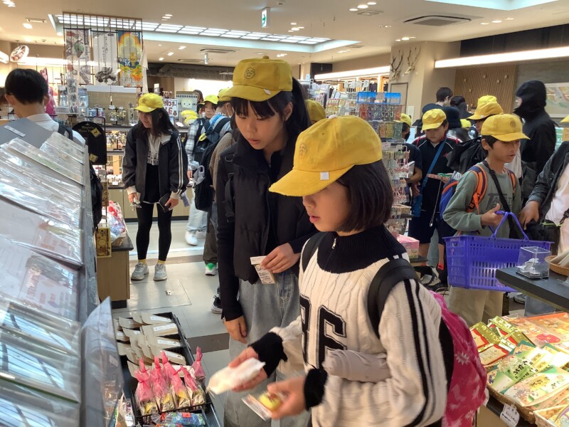 東大寺での研修から奈良公園での班別研修を終えて、学年集合っ写真を撮影した後、猿沢池周辺での1日目のお土産タイムとなりました。