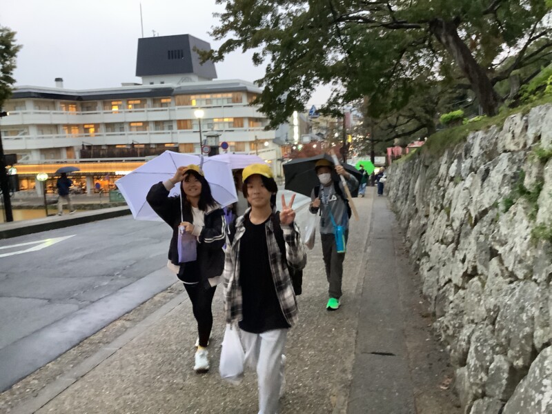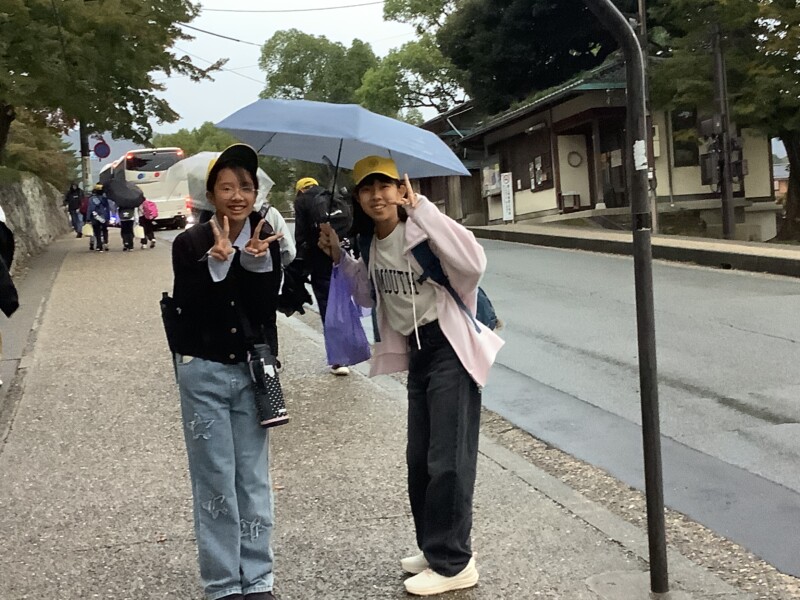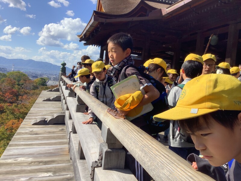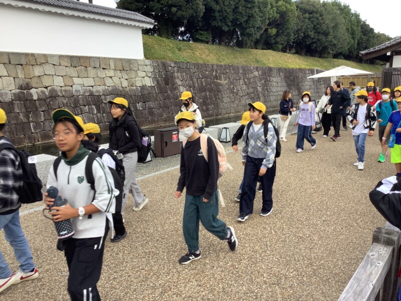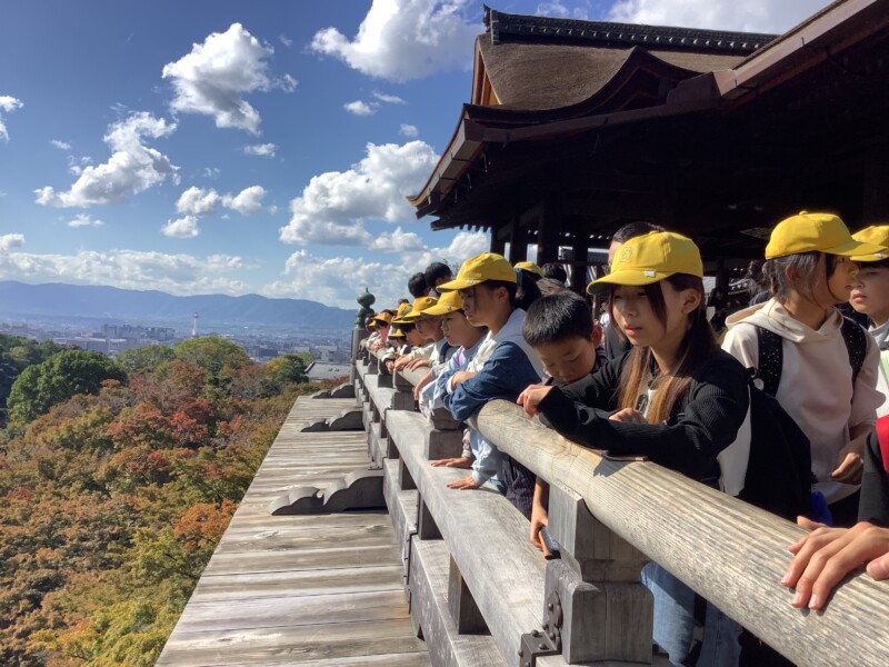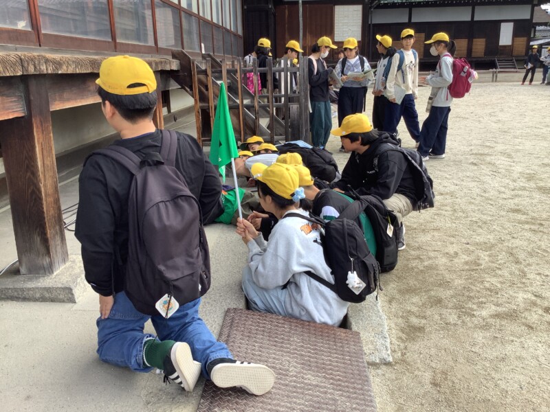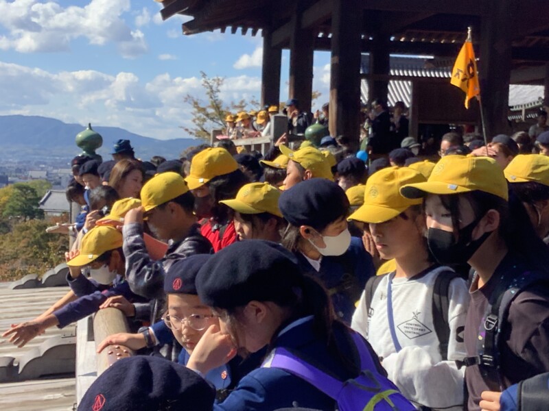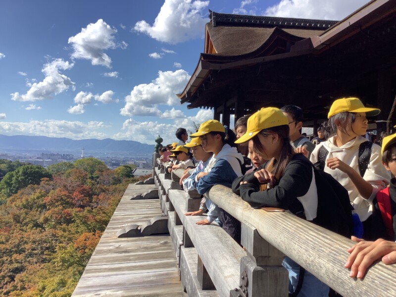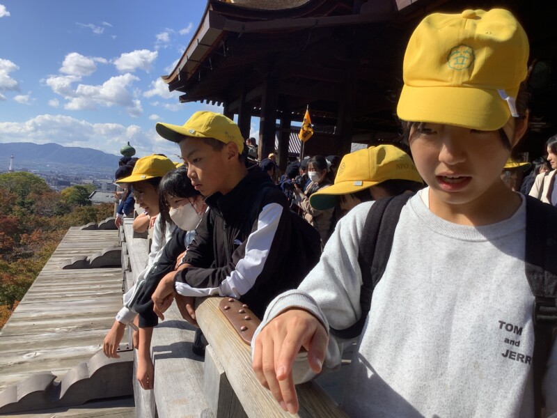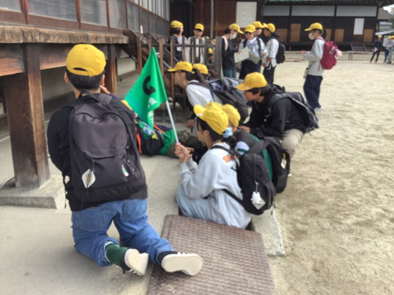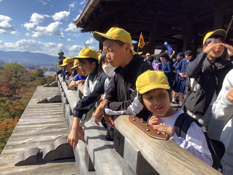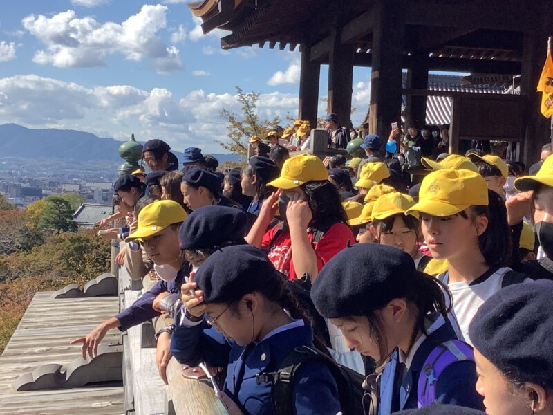 修学旅行2日目の朝を迎えました。宿泊したところは京都駅の目の前で、朝早くから駅に向かう人たちを見ることができました。