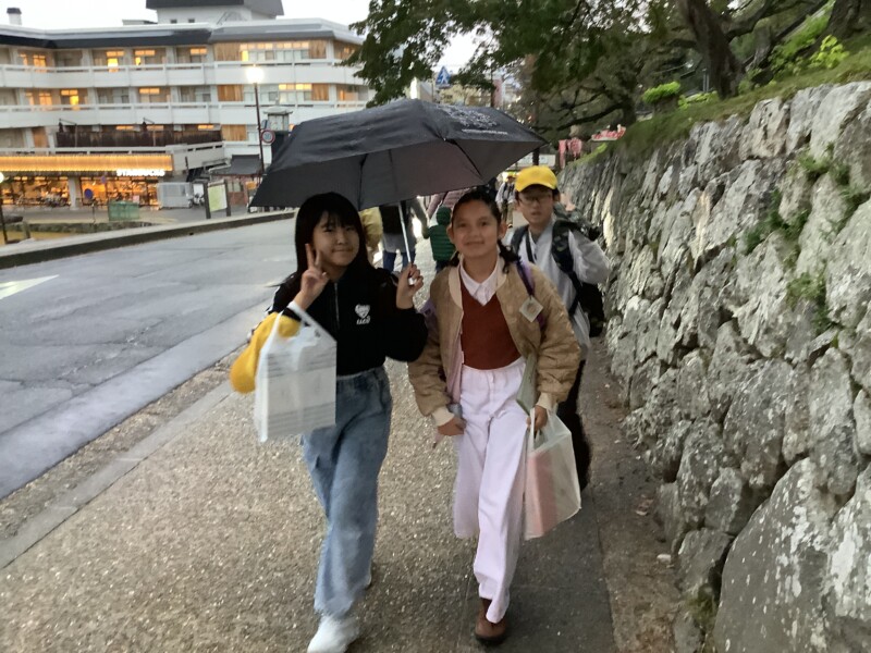 6年生の一行は今夜の宿泊地となる京都へ。今年はすいすいと「松本旅館」へ到着。