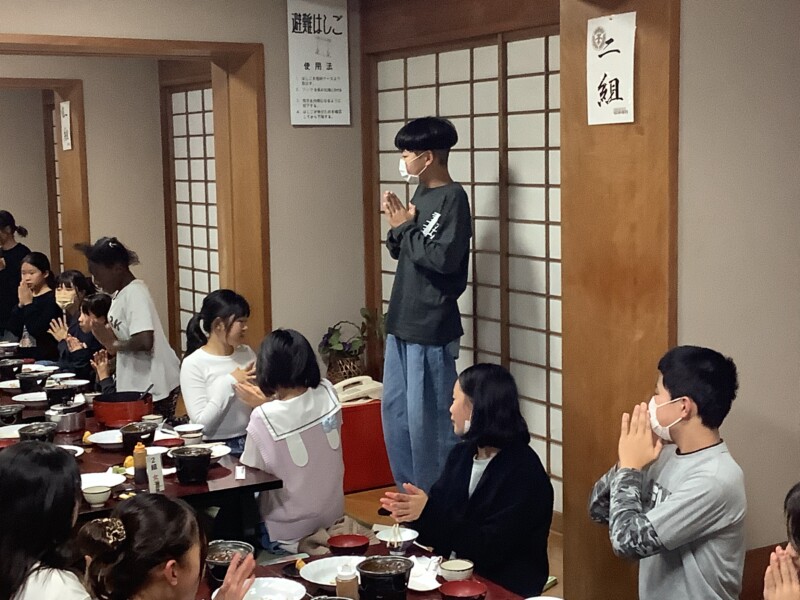 みんなと食べる4回目の食事です。そして、修学旅行中は最後の会食。