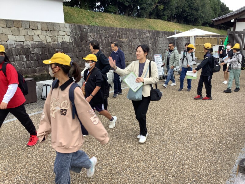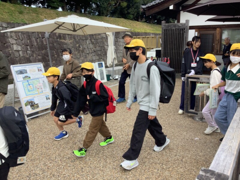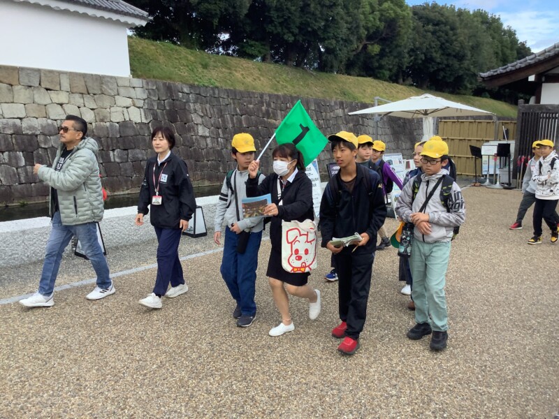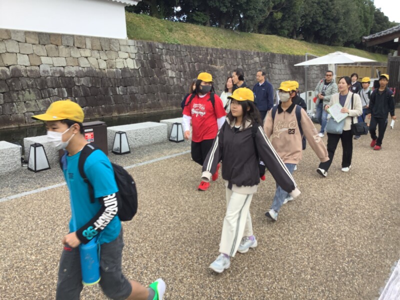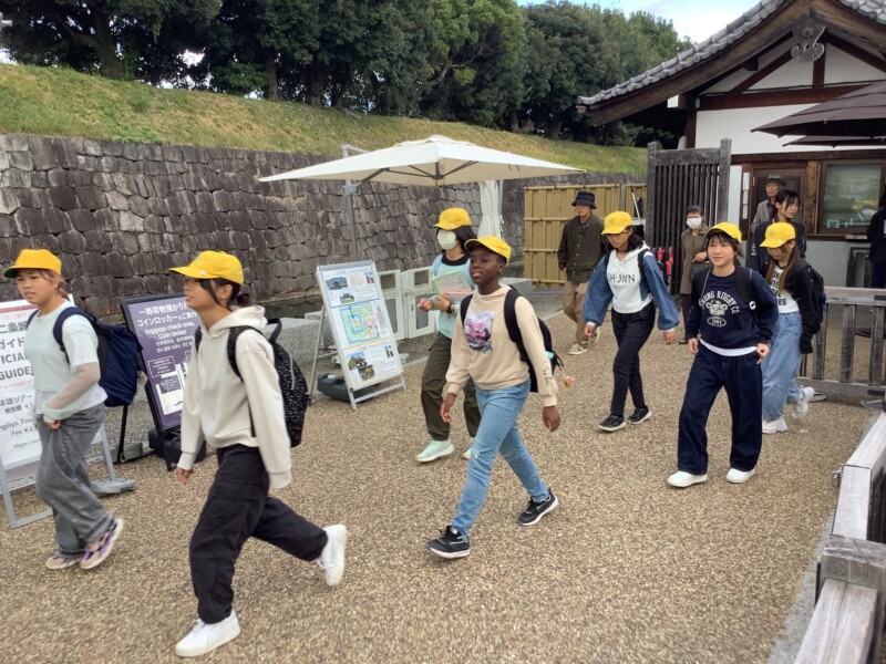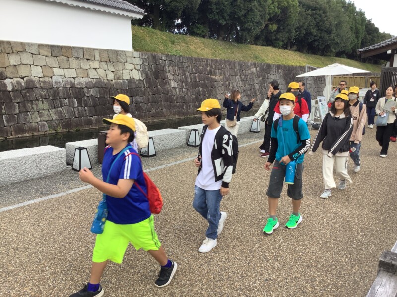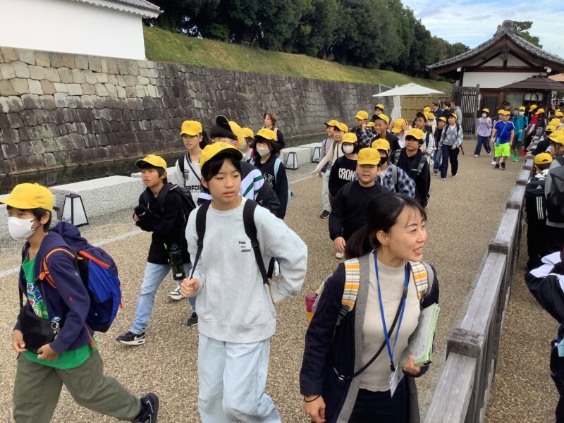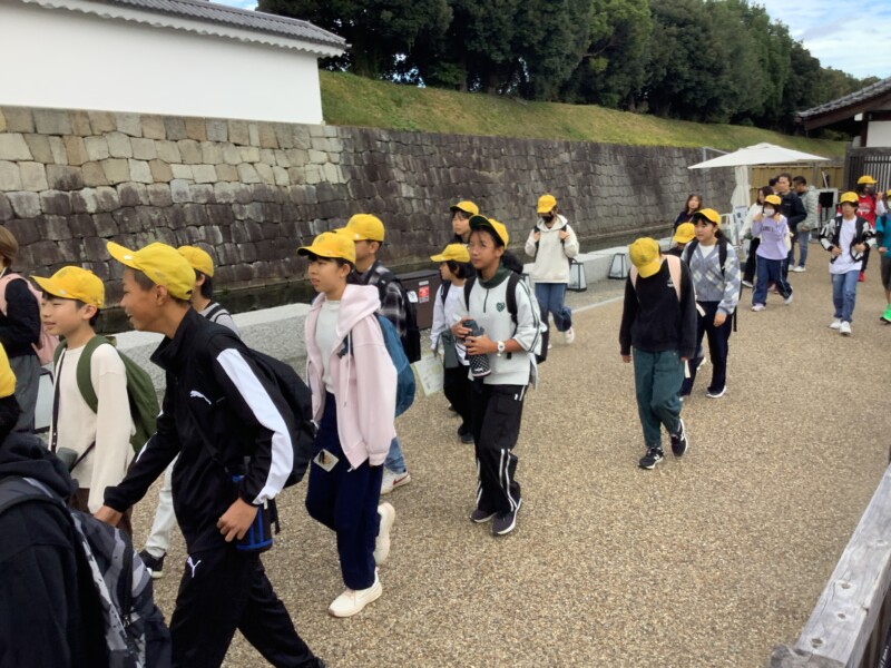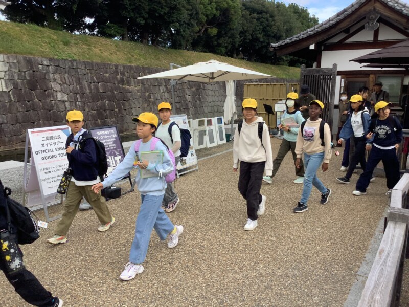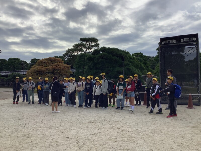 旅館の方が手を振りながらのお見送りの中、2日目の最初の研修地である二条城へ向かいます。