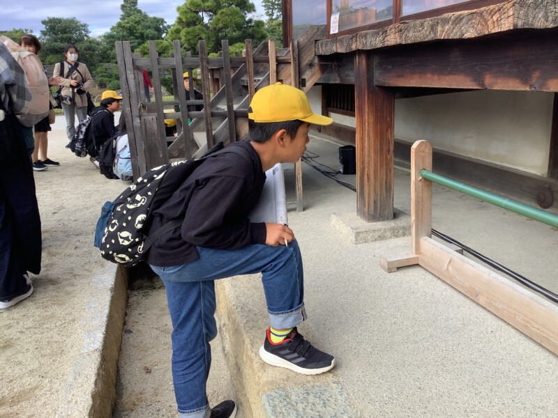 場内のジオラマ風の展示や天井、欄間の細工、そして鴬張りの音色を体験しました。城内の撮影は禁止されているので、建物外での様子を中心に紹介しました。
