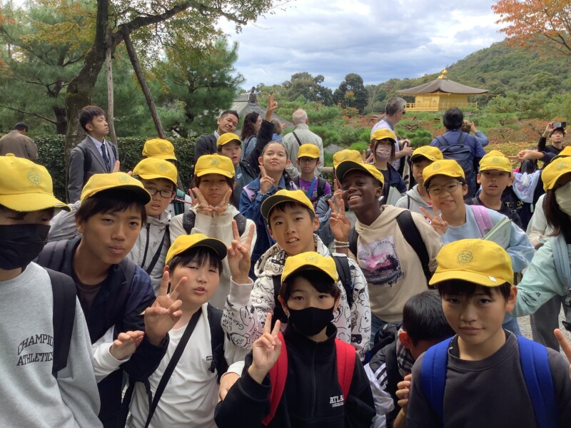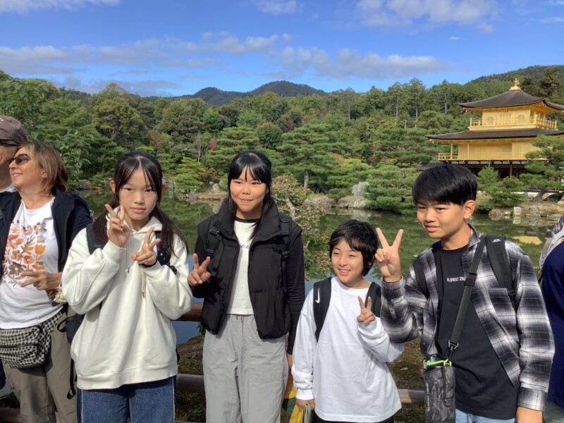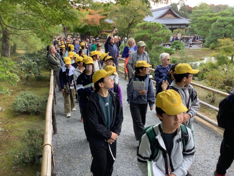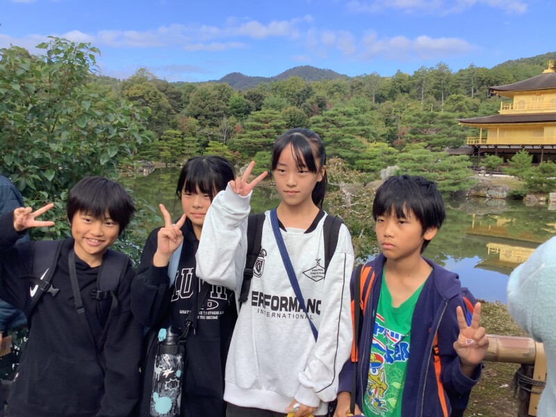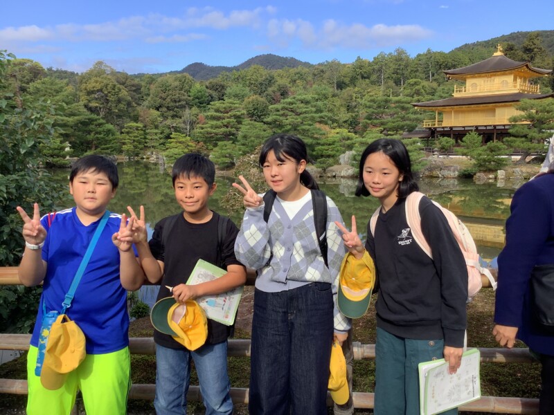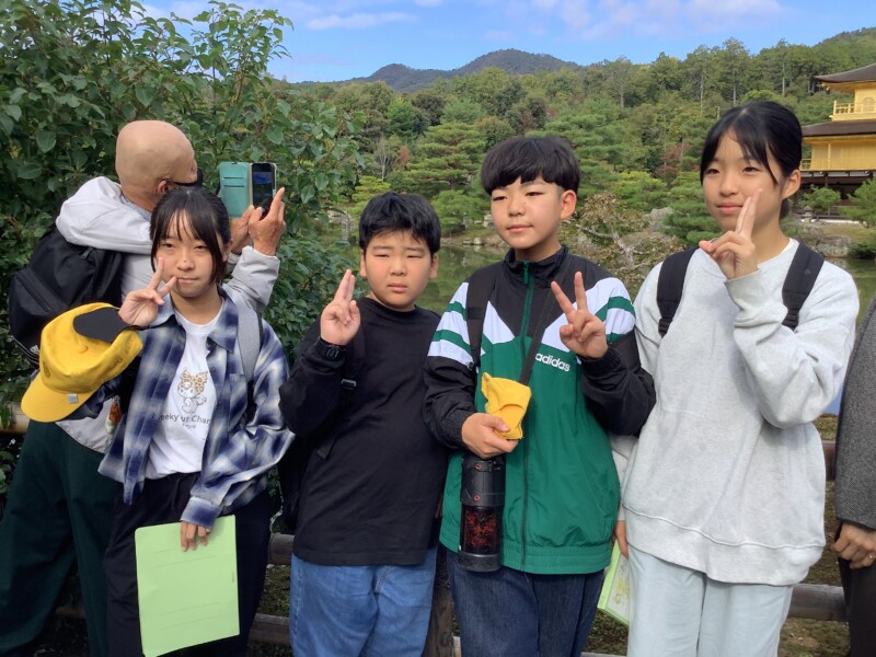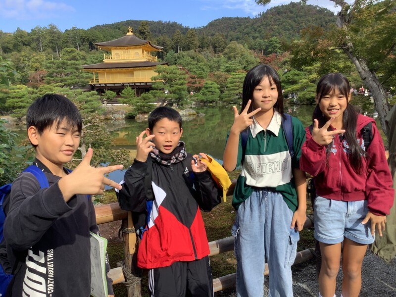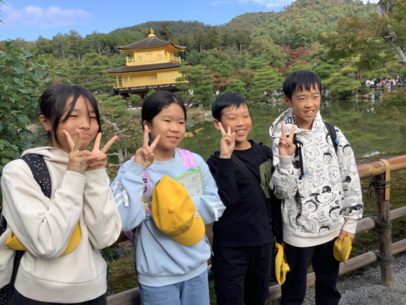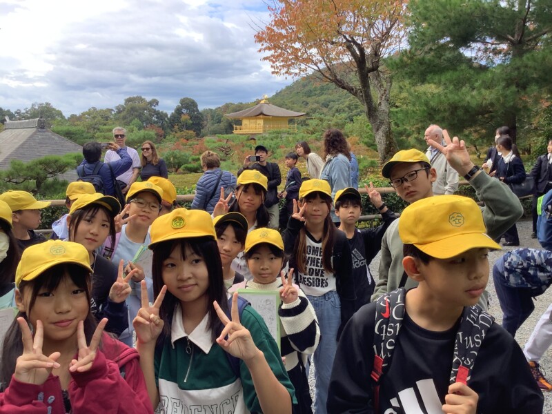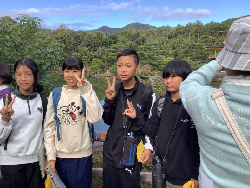 二条城での研修を終えて、6年生一行は金閣寺へ。金閣寺での研修時間帯となると、少しずつ、観光客が増え始めました。