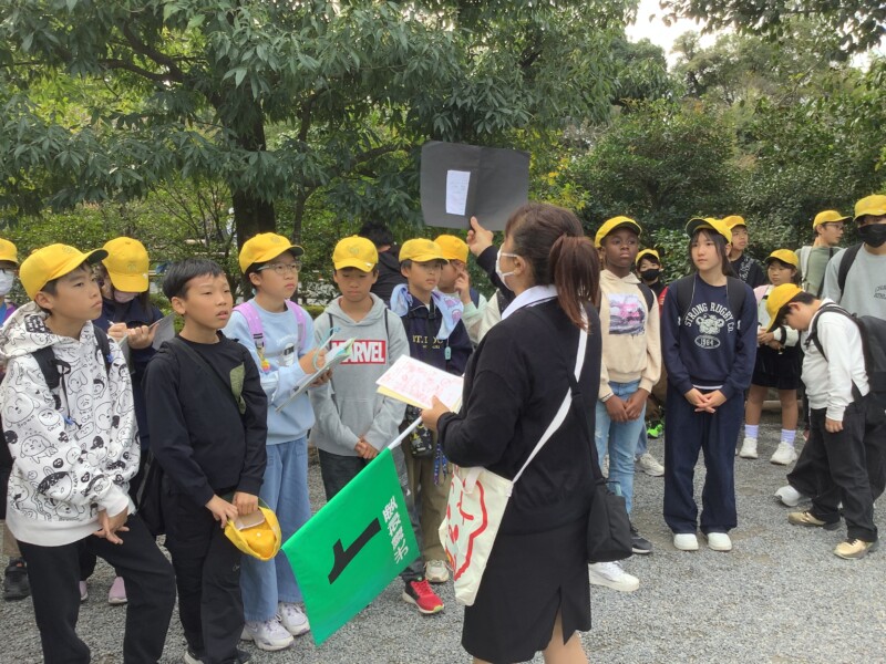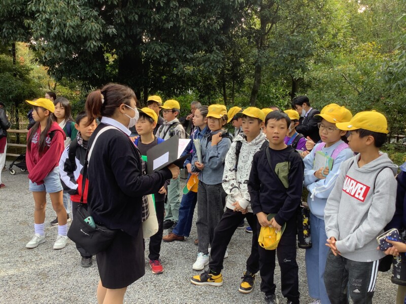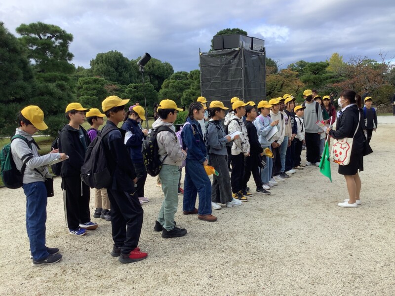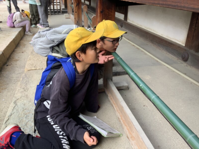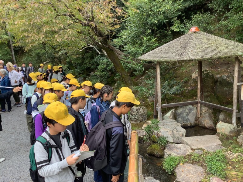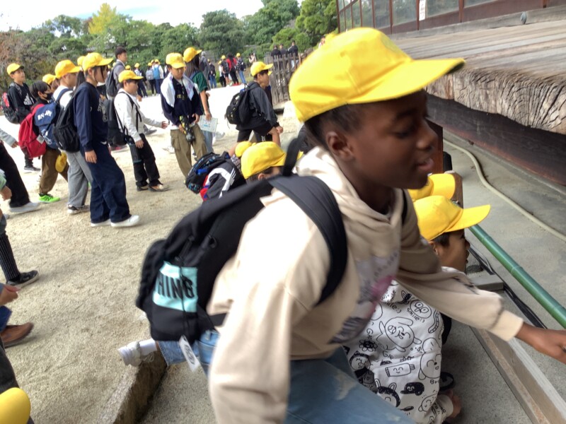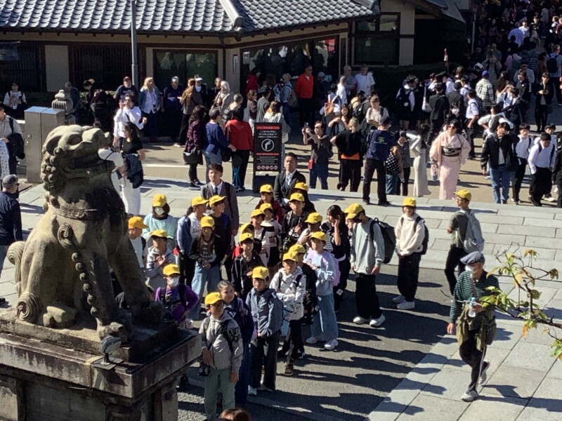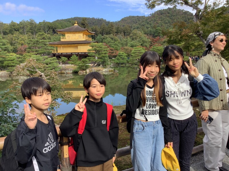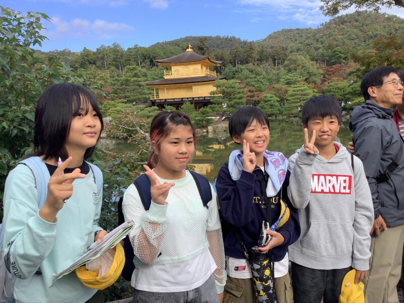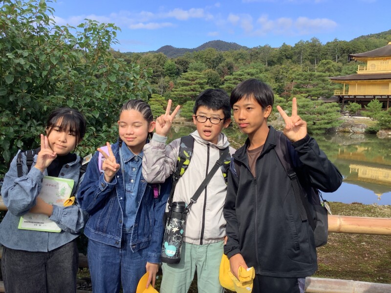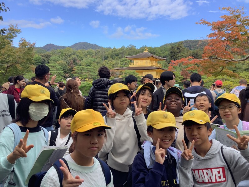二条城での研修を終えて、6年生一行は金閣寺へ。金閣寺での研修時間帯となると、少しずつ、観光客が増え始めました。