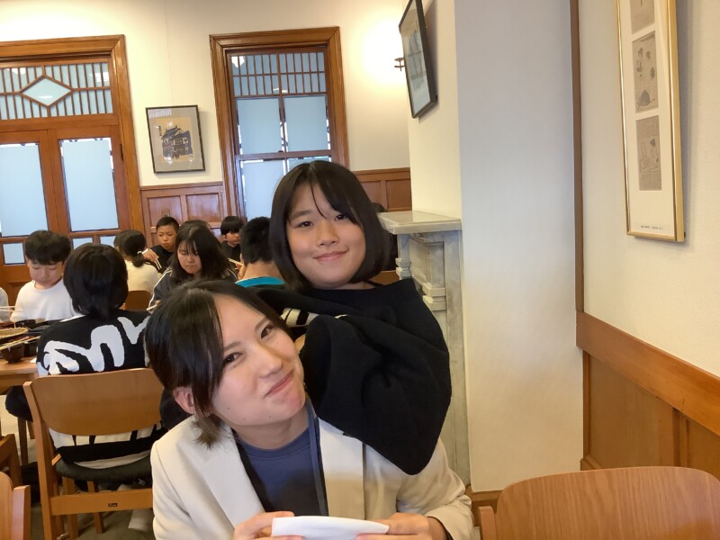 小学生の皆さんにとっては、写真や資料を見ただけでは、その時の状況を理解することは難しいかもしれないですが、蒸気機関車の窓から大きく身を乗り出しながら手を振り、涙を隠すことができない様子など、中学を卒業して、親元を離れ、縁もゆかりもない、見ず知らずの土地へと向かう不安さが伝わってきます。
