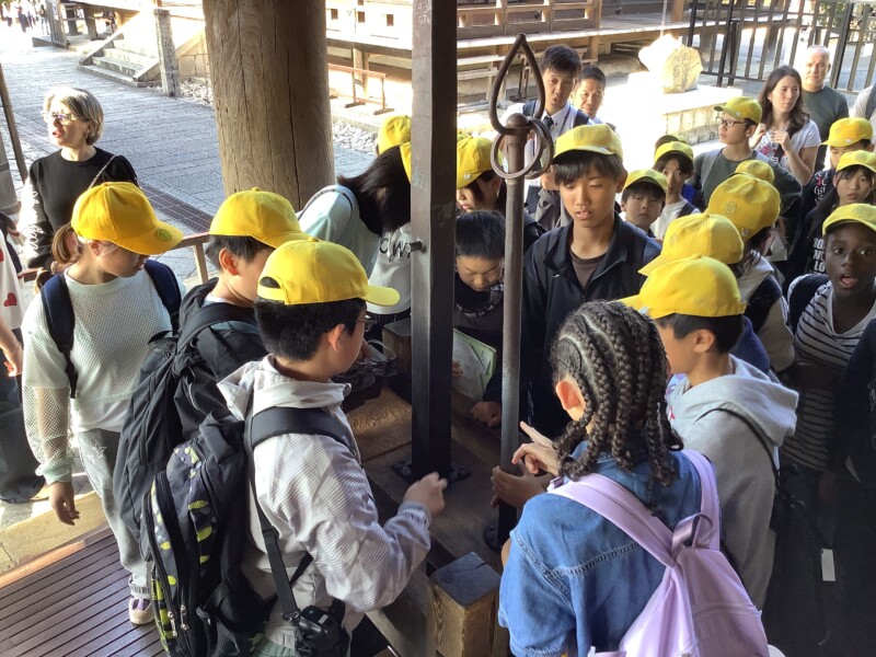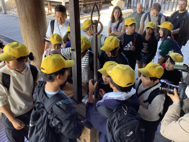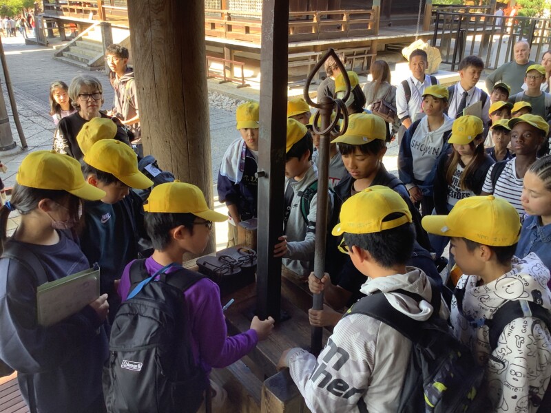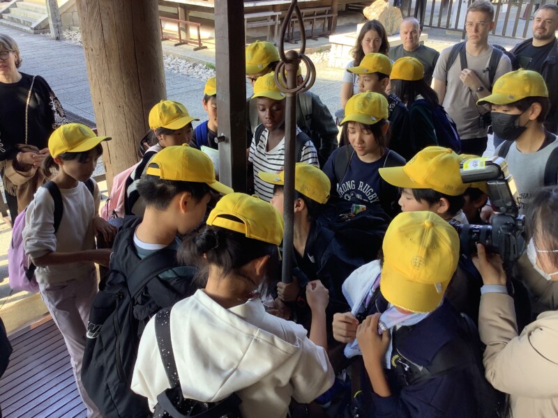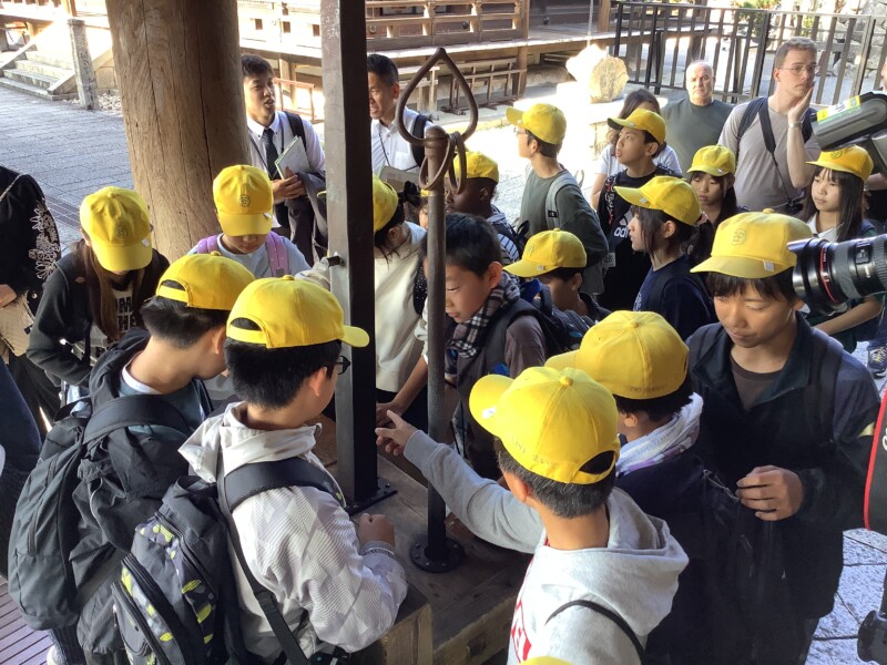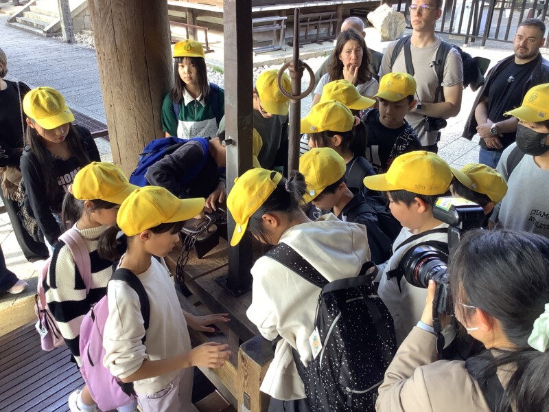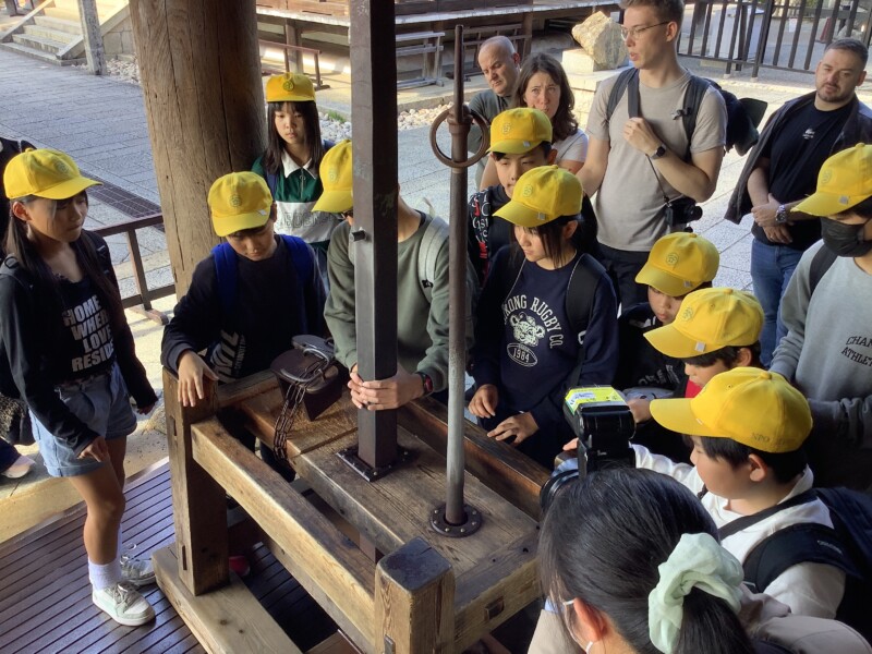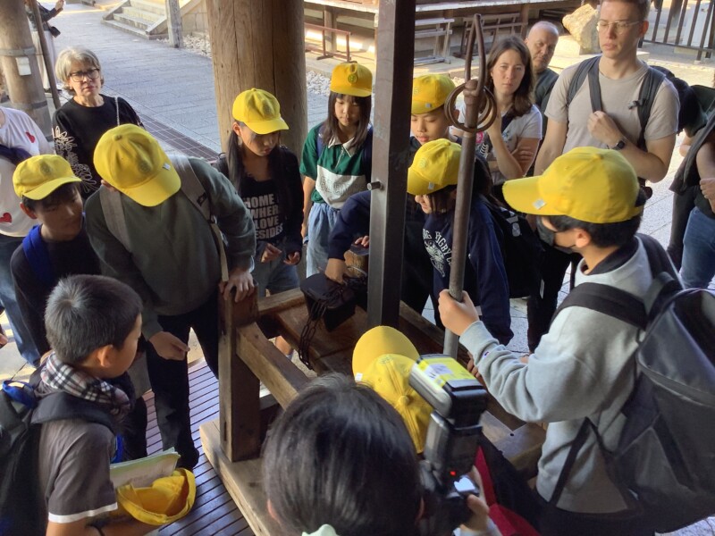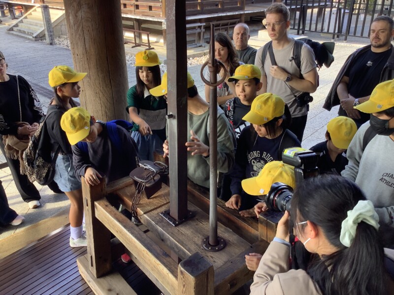 集合写真撮影時は、外国の観光客の方が、珍しかったのか、山門と笠原小の児童がよほどマッチしていたのか、撮影するところを撮影している観光客の方が続出。
