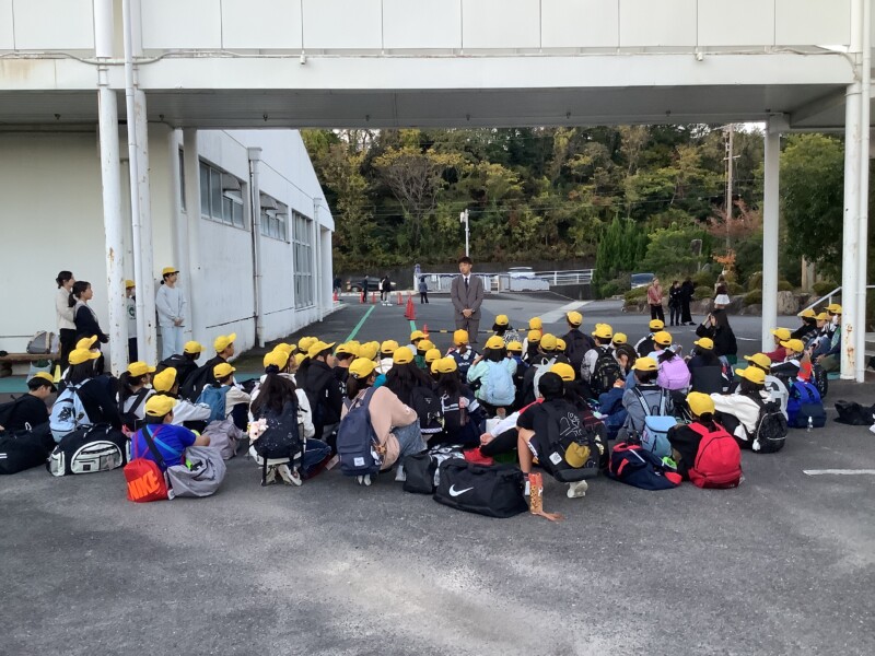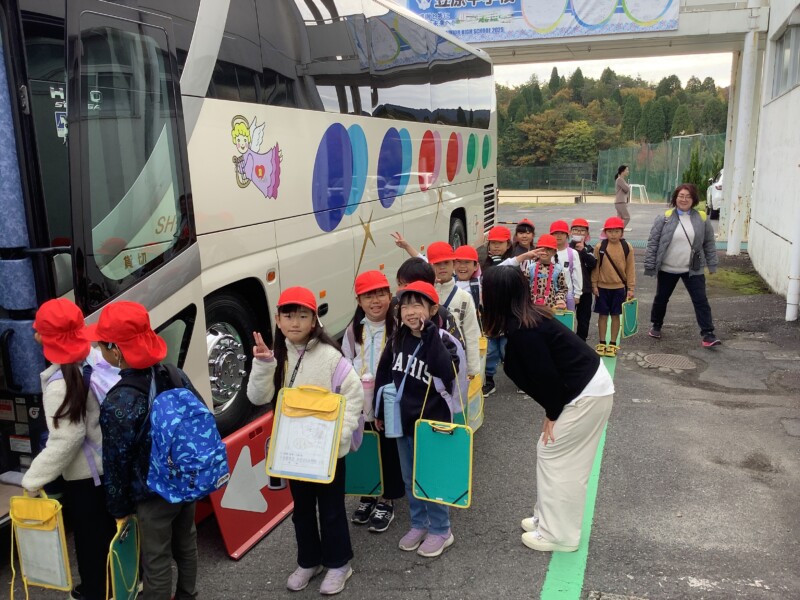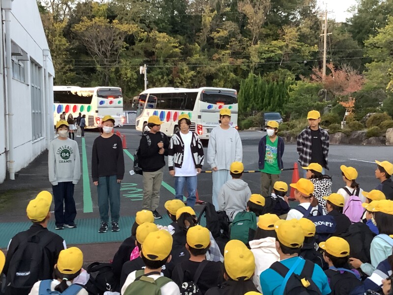 到着後、解散式を行いました。ちょうど、帰っていくバスに感謝の気持ちを込めて手を振りました。