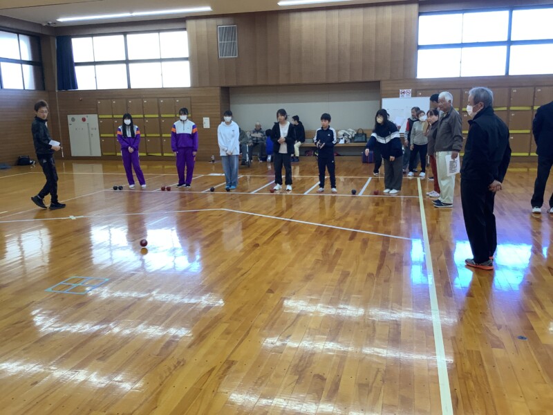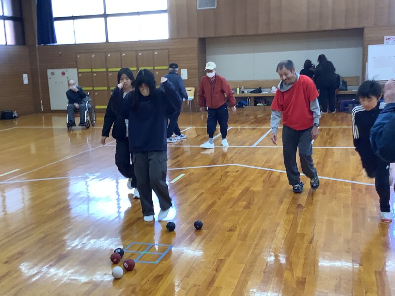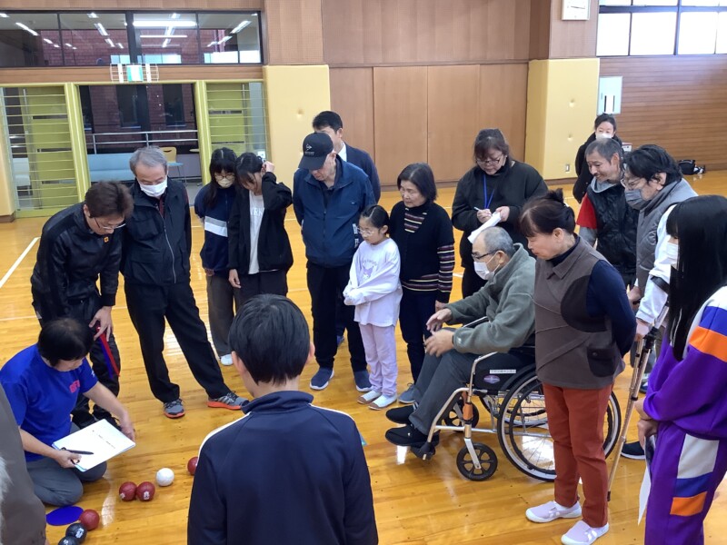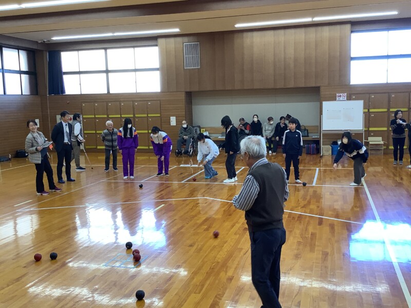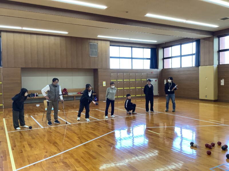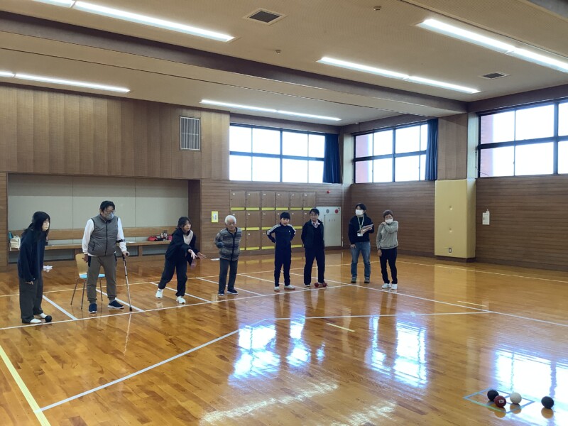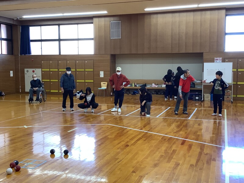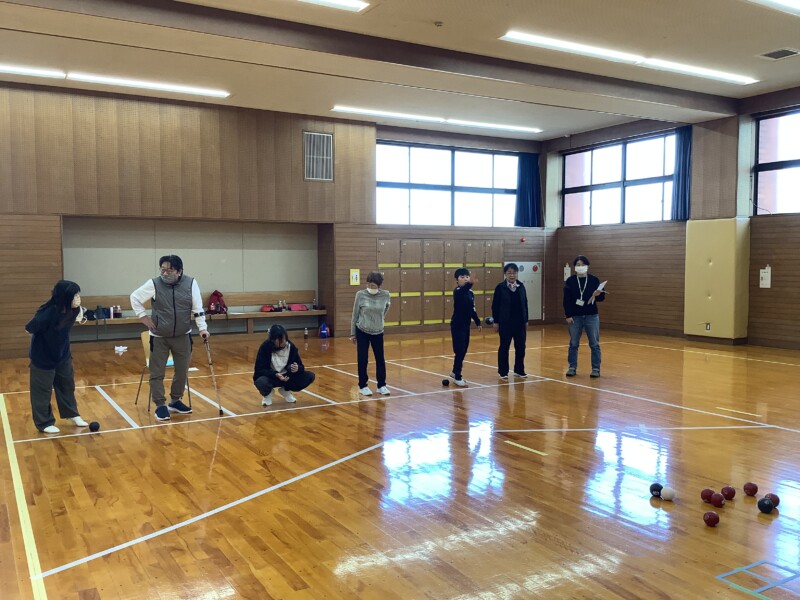 ここからは11月8日(土)に行われた多治見市身体障がい者ボッチャ交流会の様子を紹介します。初めての試みで、笠原小中の児童生徒に声をかけていただき、参加者を募集しました。小学校からは6名の児童が、2チームに分かれて参加しました。