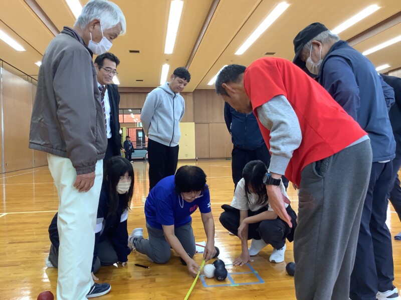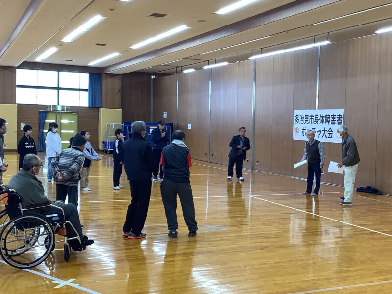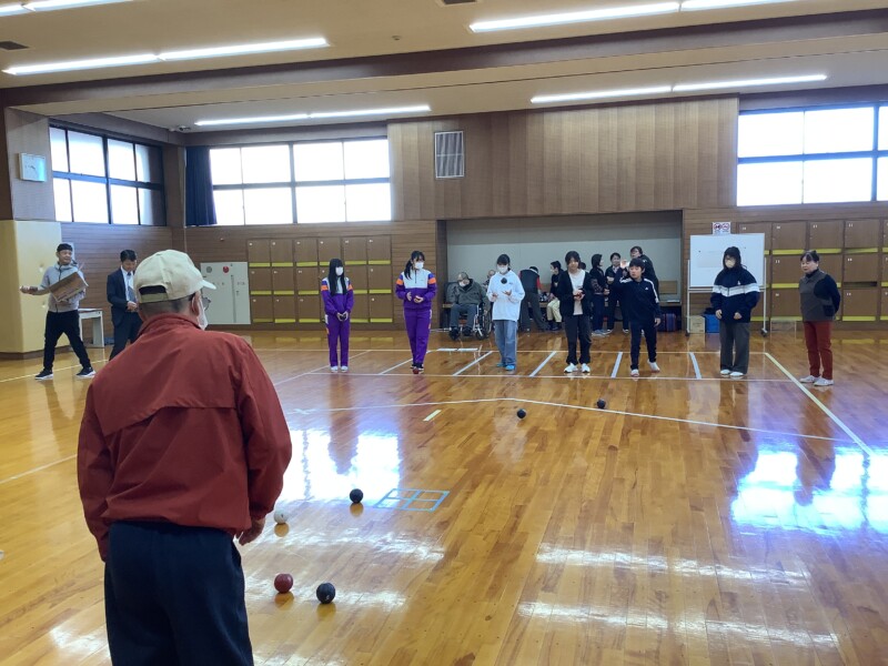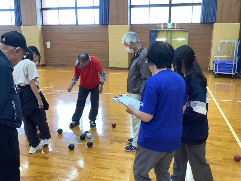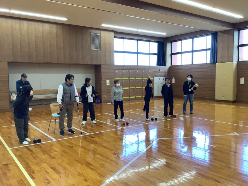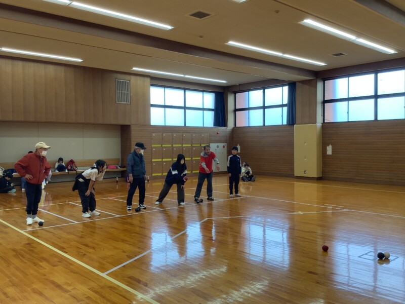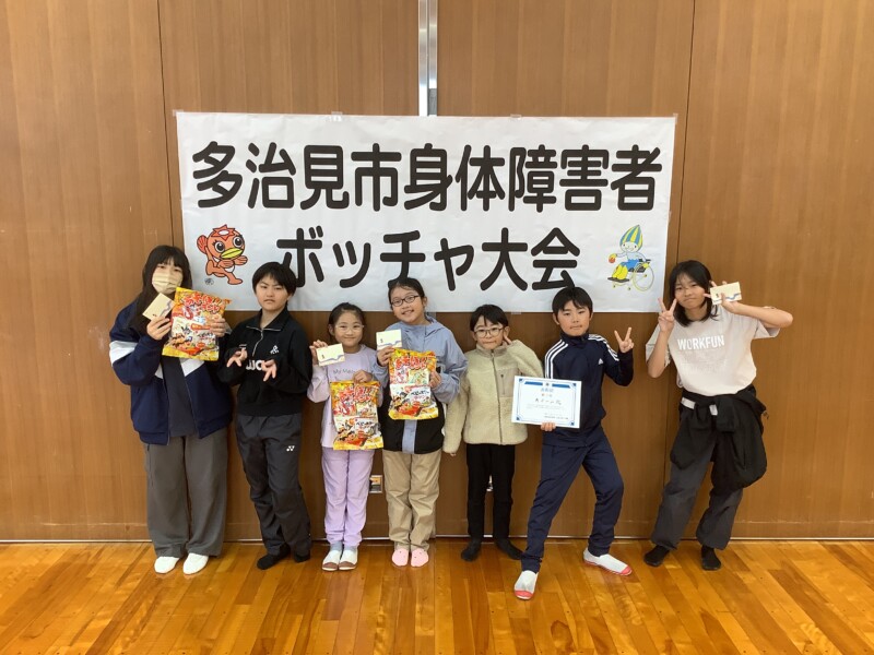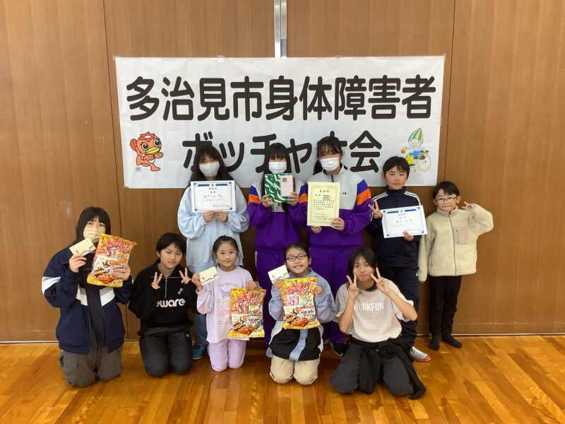 ここからは11月8日(土)に行われた多治見市身体障がい者ボッチャ交流会の様子を紹介します。初めての試みで、笠原小中の児童生徒に声をかけていただき、参加者を募集しました。小学校からは6名の児童が、2チームに分かれて参加しました。