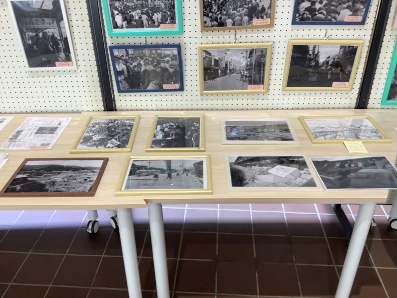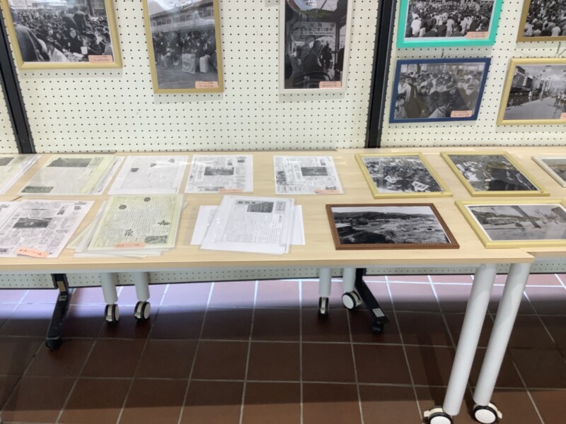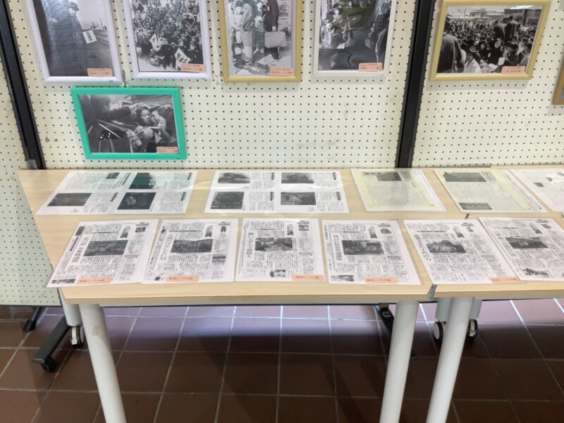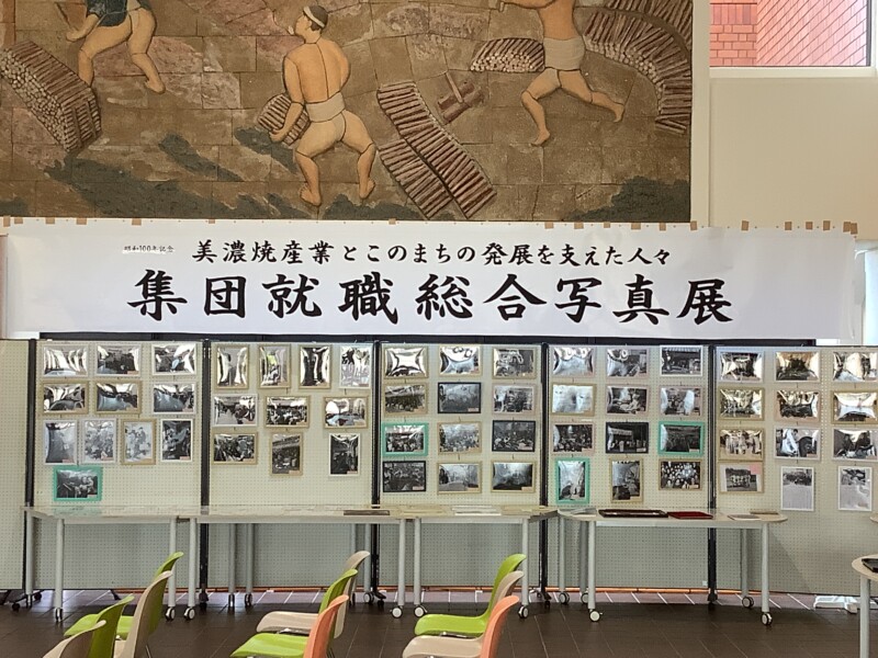 この写真展は多治見市内に在住の元多治見市議会議員である古庄修一様が昭和100年となる節目に企画なさったものです。約50~60年前に笠原町をはじめ、多治見市内には九州地方から中学校を卒業したばかりの若者が集団就職で迎え入れられました。中学卒業後なので、わずか15歳で親元を離れ、1昼夜、当時の蒸気機関車に揺られながら、多治見駅に到着したといわれます。