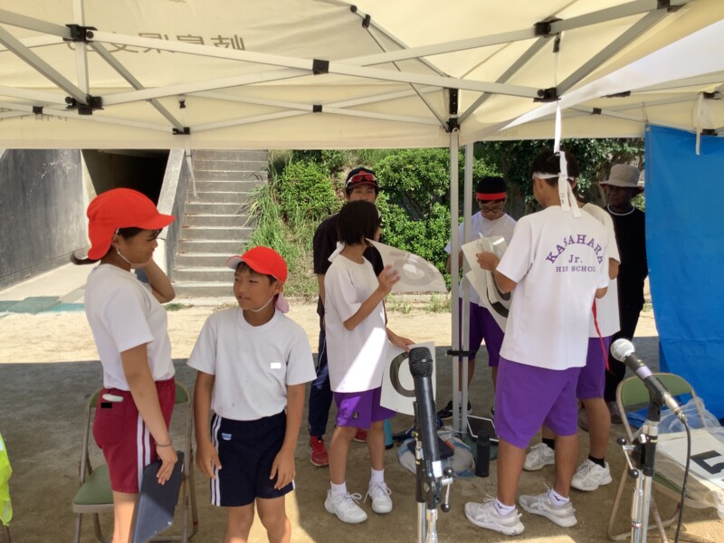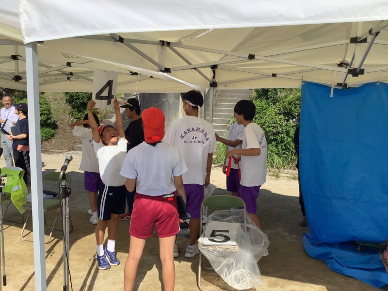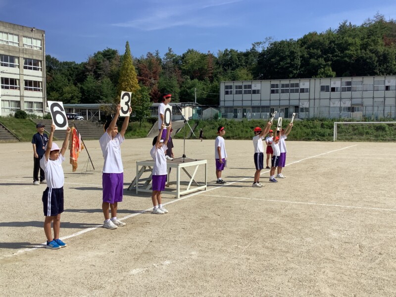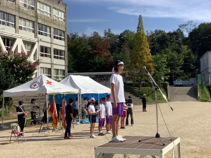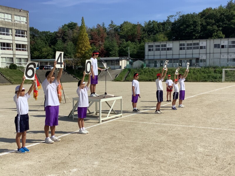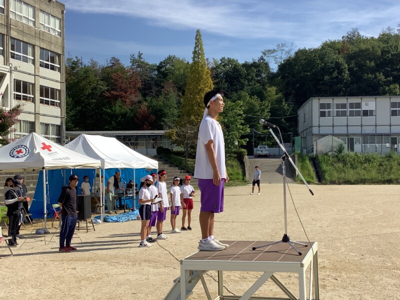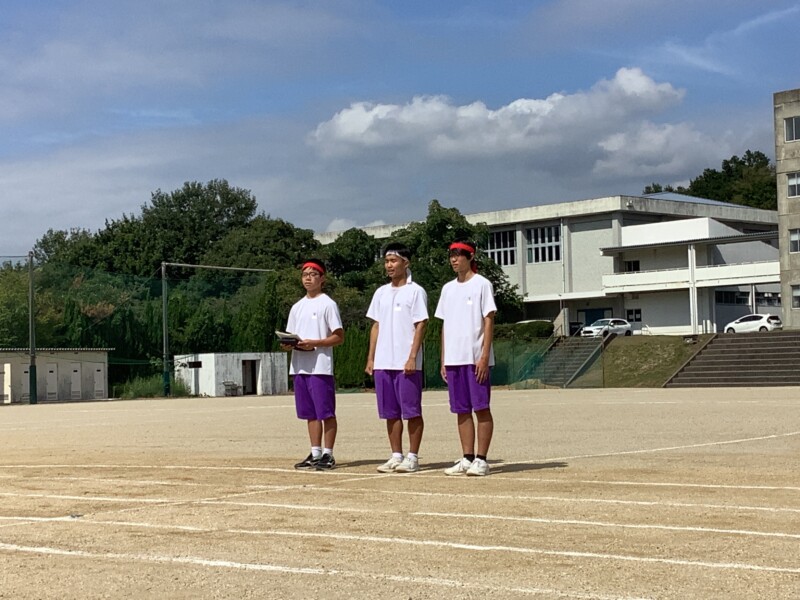 今回は両団への優勝旗授与の練習のため、それぞれの団が勝った時の得点結果の発表をしました。