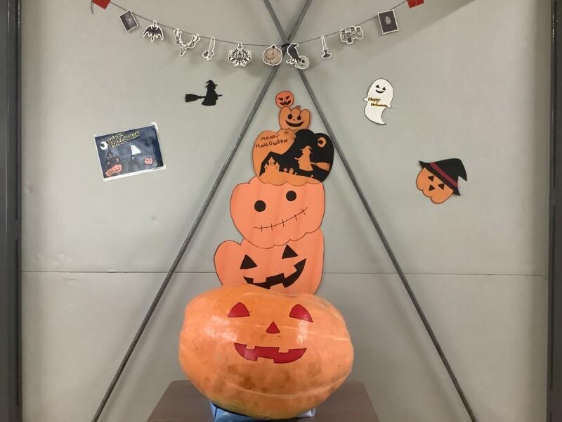 今日の最後は、職員室前廊下に展示してある「かぼちゃ」の紹介です。