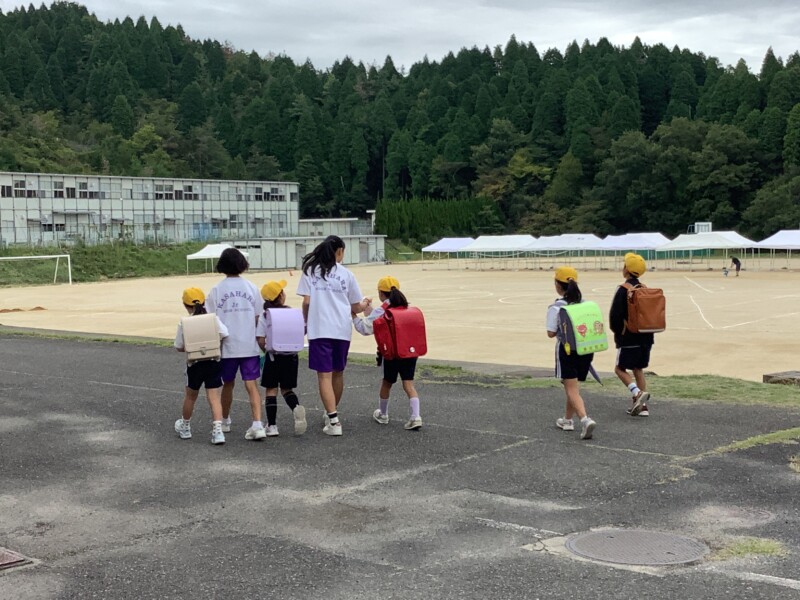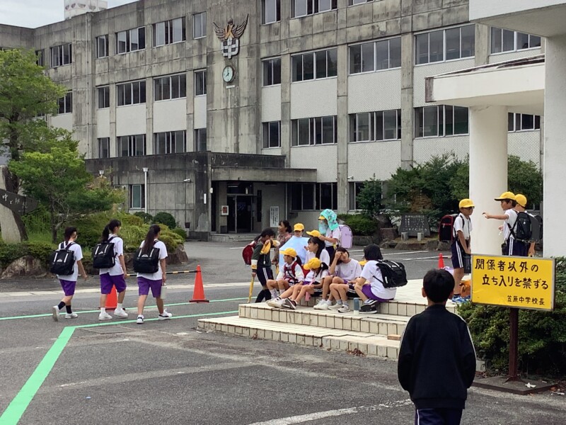 1年生が練習を終えて、校舎内に戻ろうとしているところです。