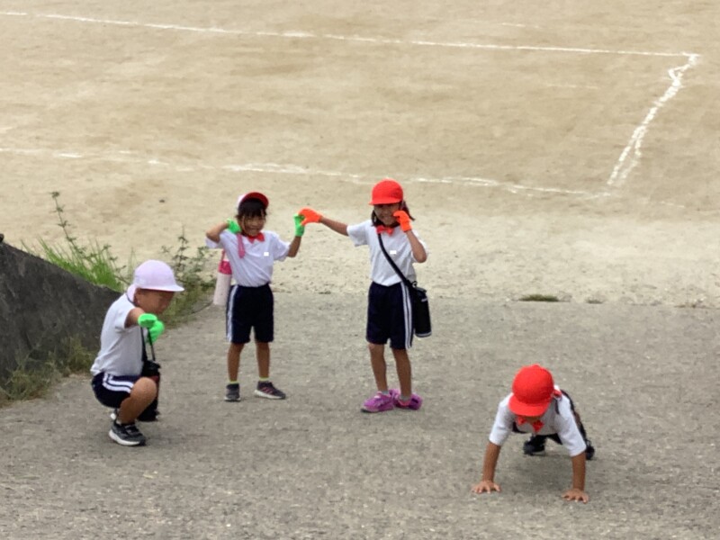運動場では児童玄関に向かう前に、元気に遊んでいました。