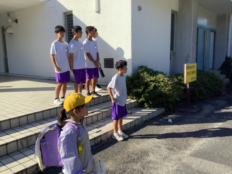 いよいよ明日は「スポーツフェスティバル」です。天候が心配ですが、朝の挨拶活動はいつもと変わらず、元気に行いました。