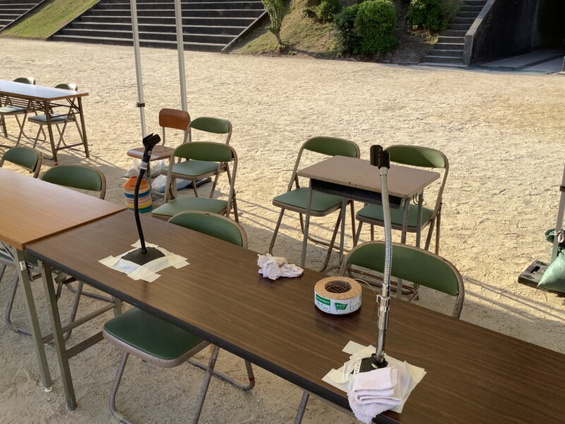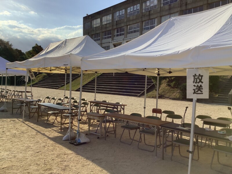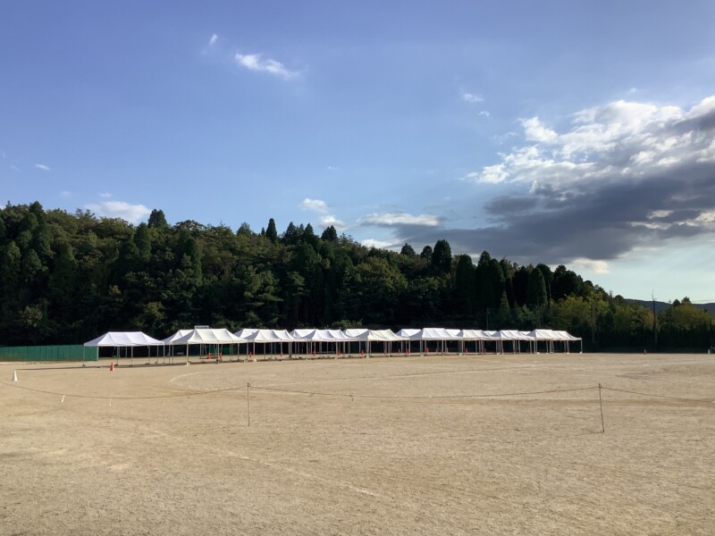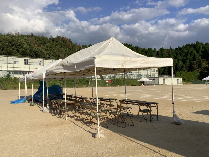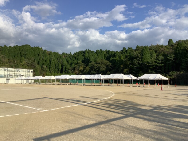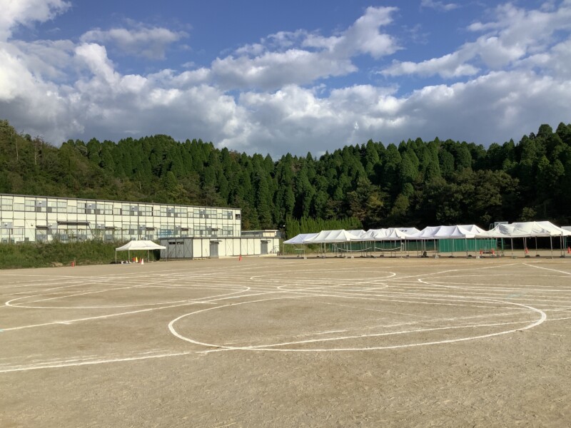 ここには小学生・中学生の姿はもちろんありませんでしたが、少し前までこの運動場で、それぞれの分担でしっかりと明日の準備をしてくれていた姿が目に浮かぶようでした。