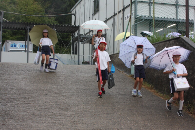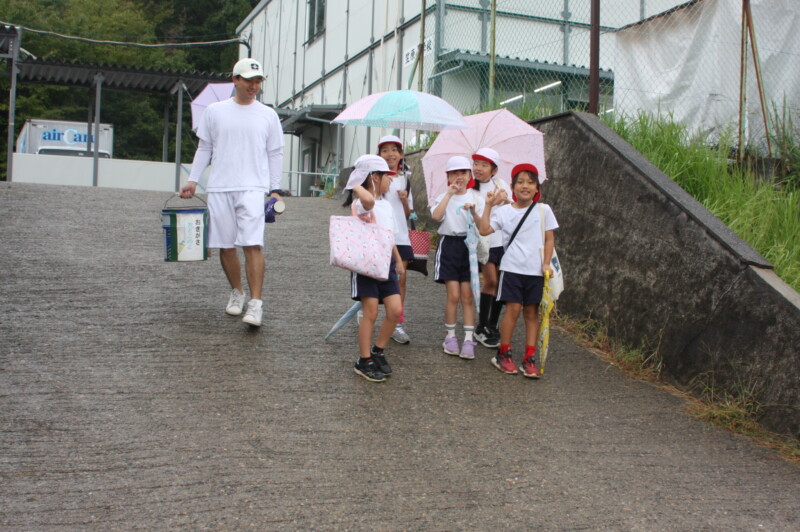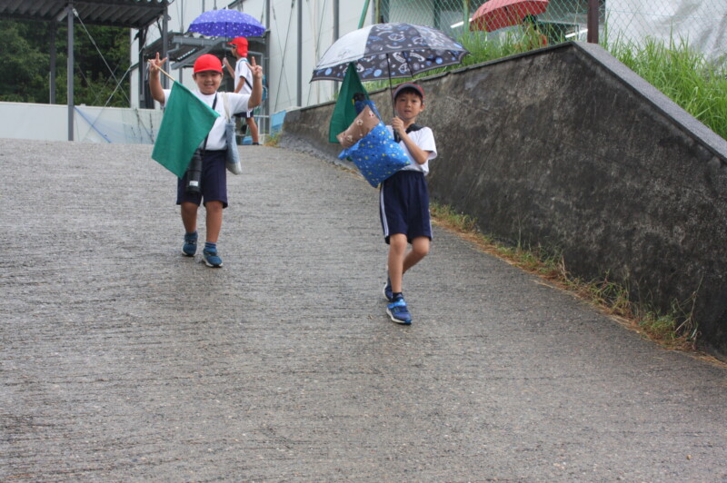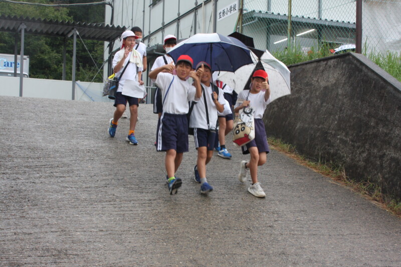 今日は体育館を開放することもあり、雨宿りをしながらの活動です。