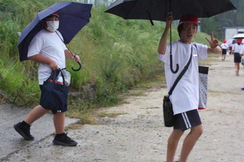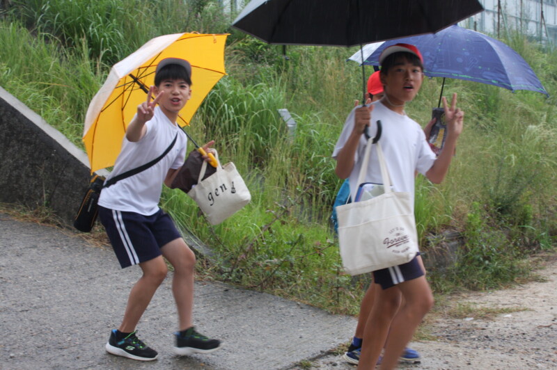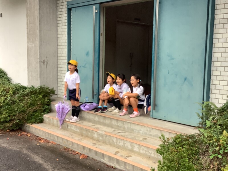 中学生も教室待機でしたが、待ちきれずに元気いっぱい。