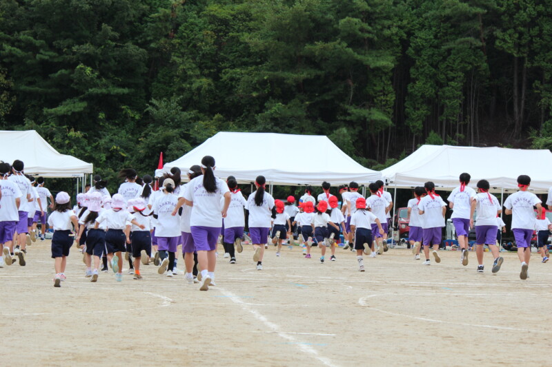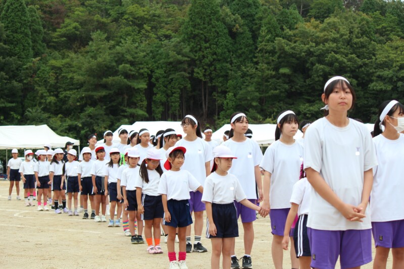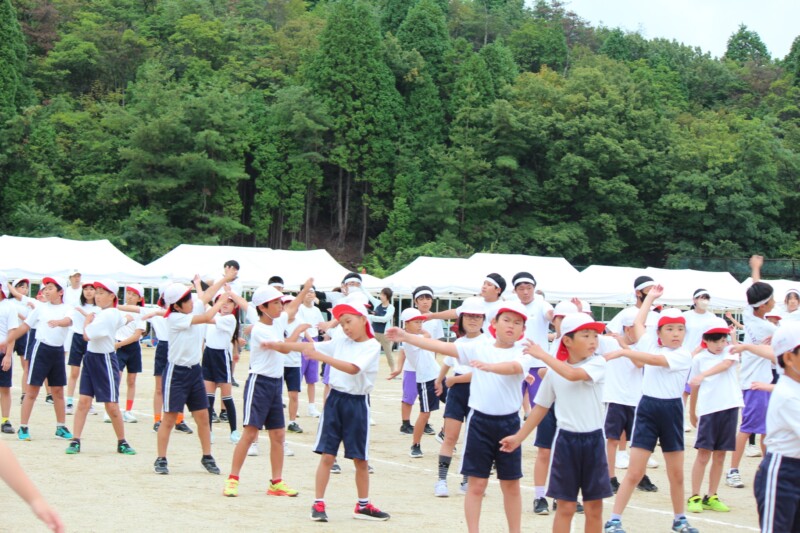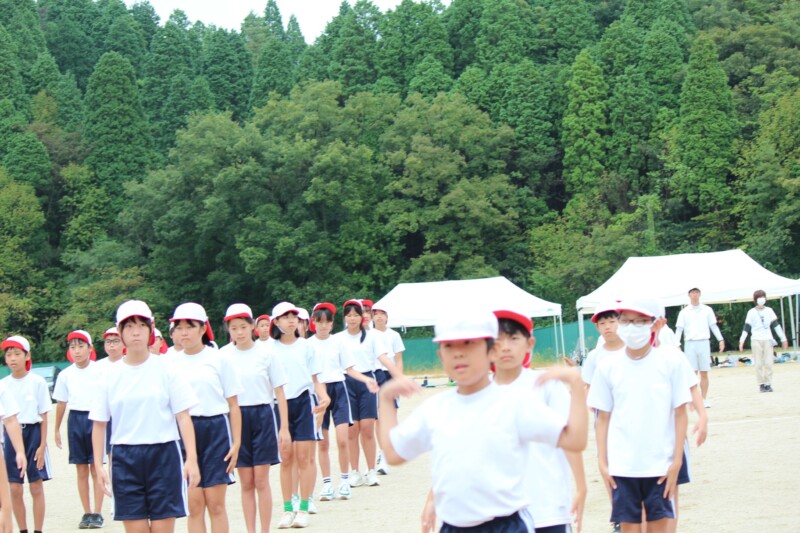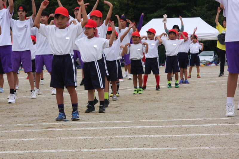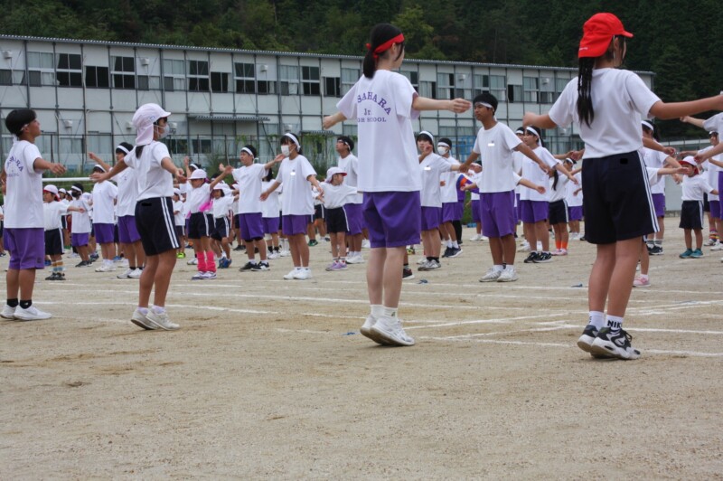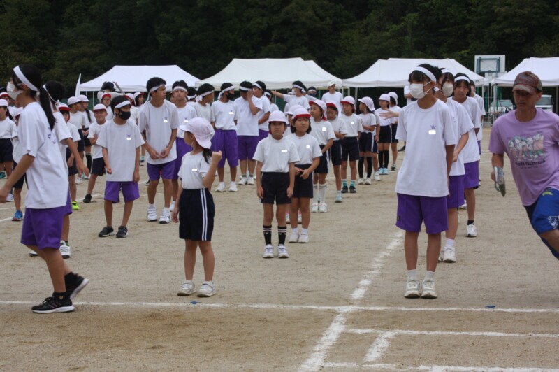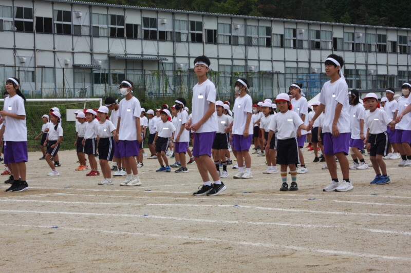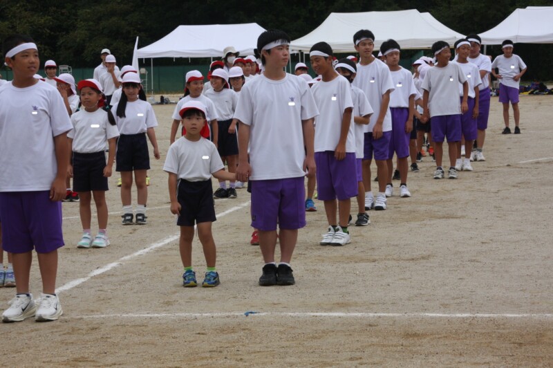 そして児童生徒が団席に戻り、最初の中学年団体演技の準備を進めます。