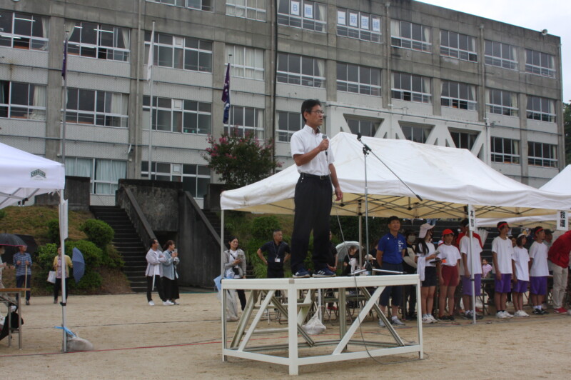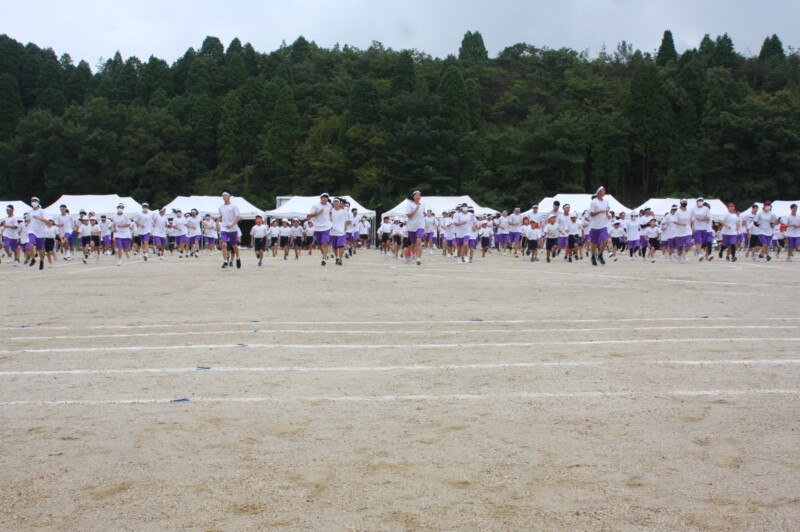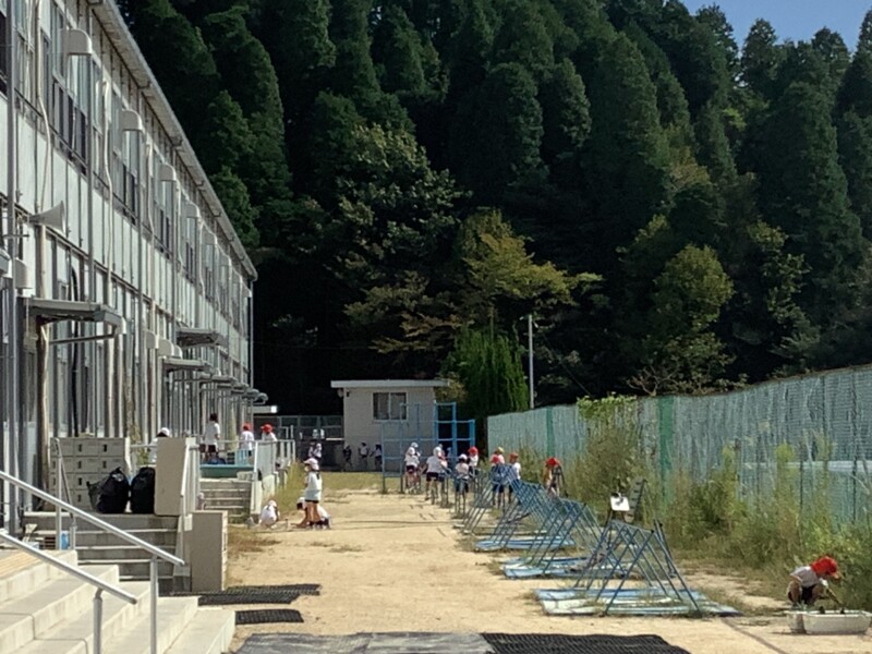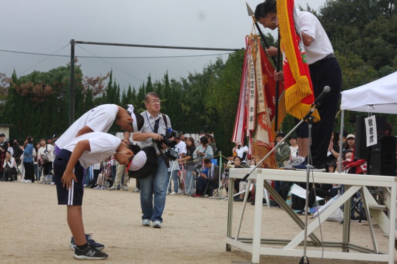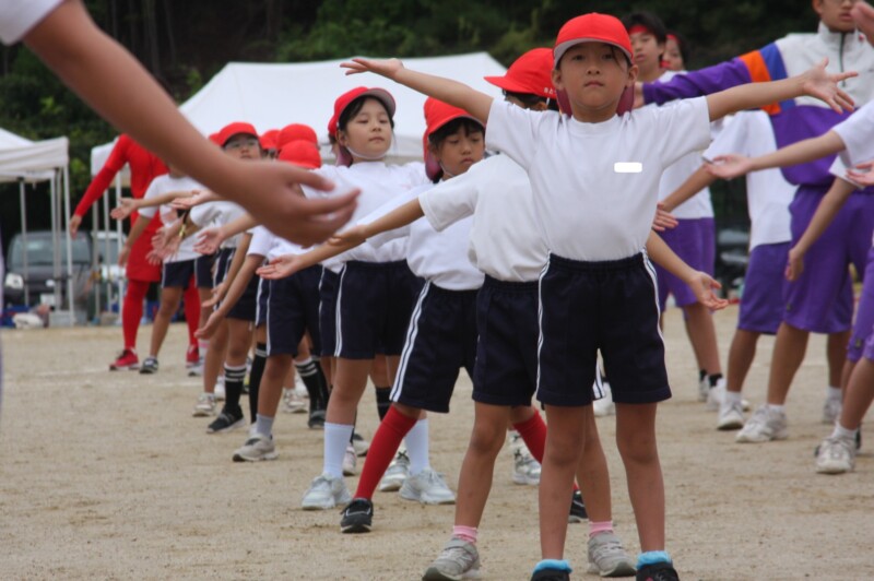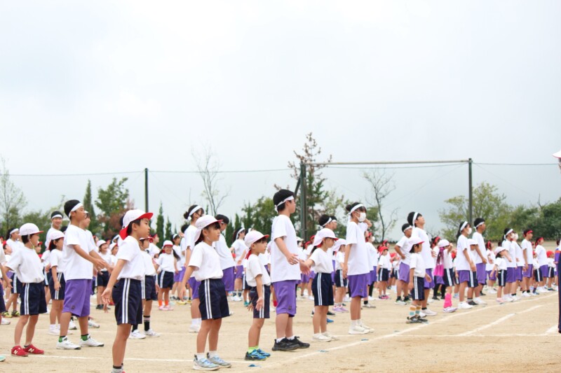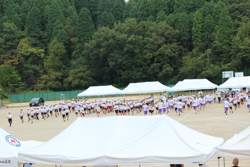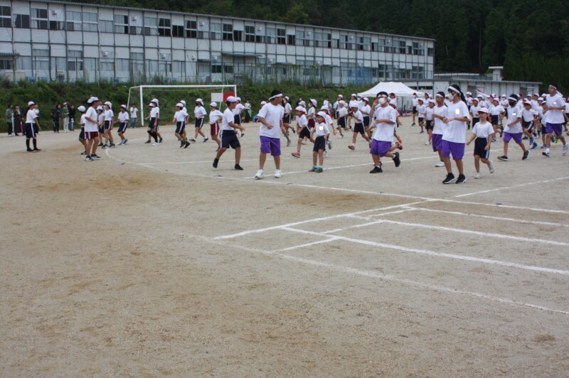 そして児童生徒が団席に戻り、最初の中学年団体演技の準備を進めます。