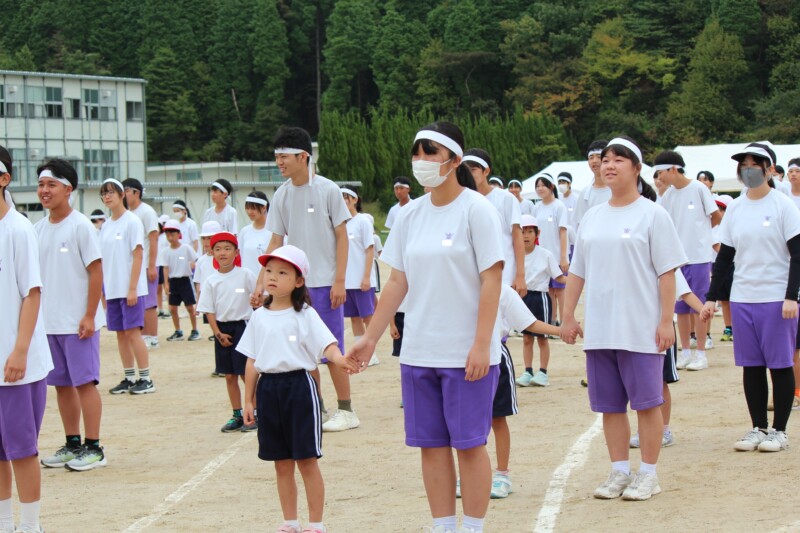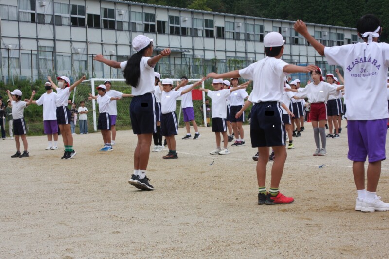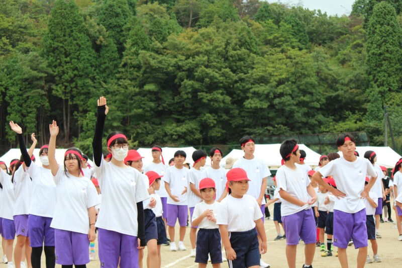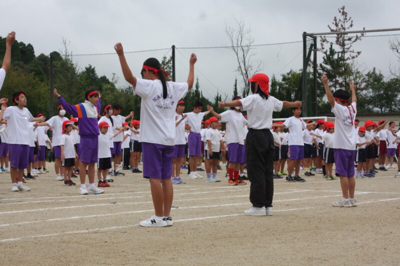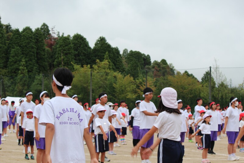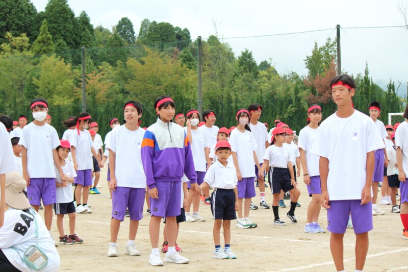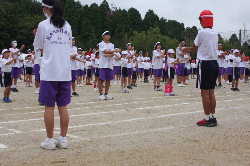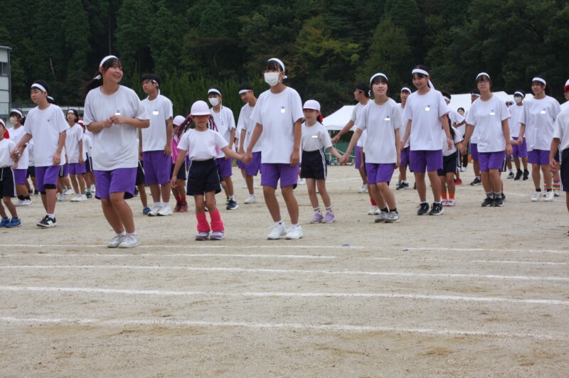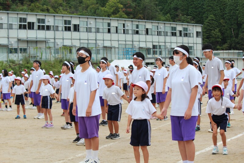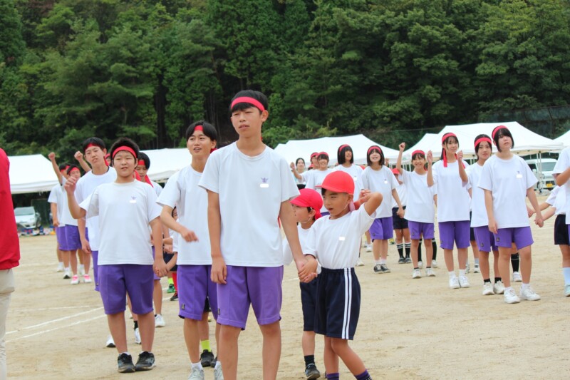 ここからは両団の団リーダーと、全校児童生徒による「いうこと一緒、やること一緒」です。小学校の児童と中学校の生徒が手をつなぐ様子もとても微笑ましかったです。
