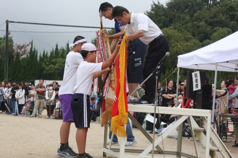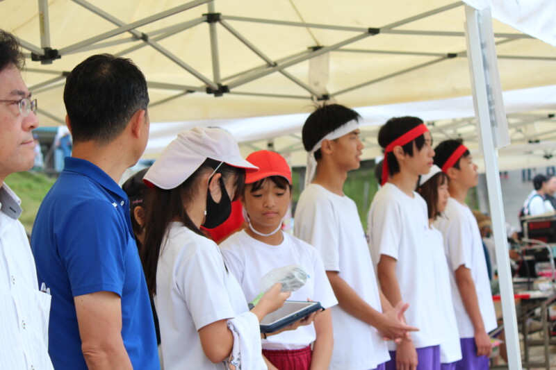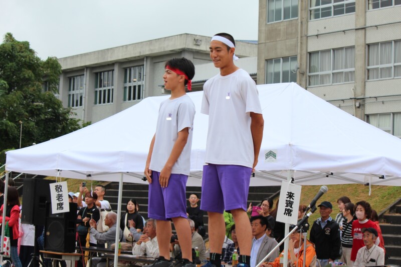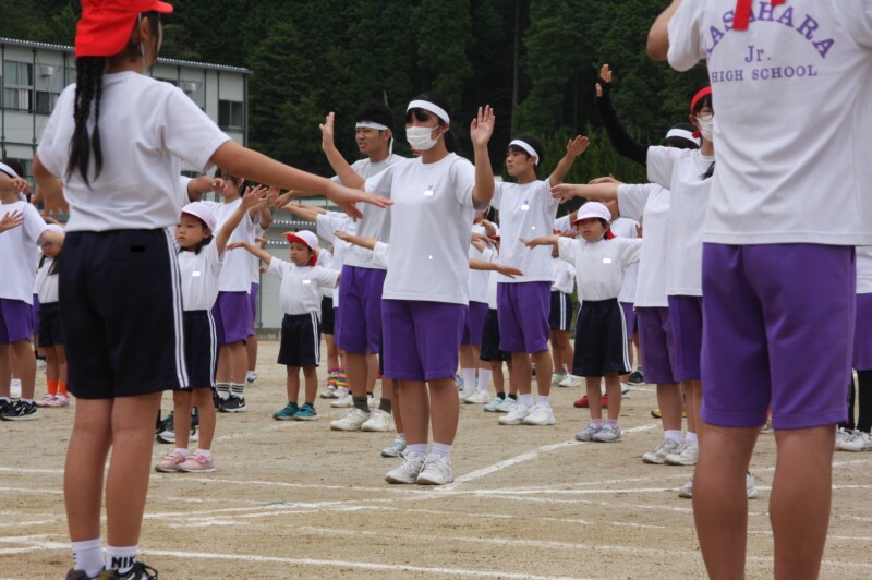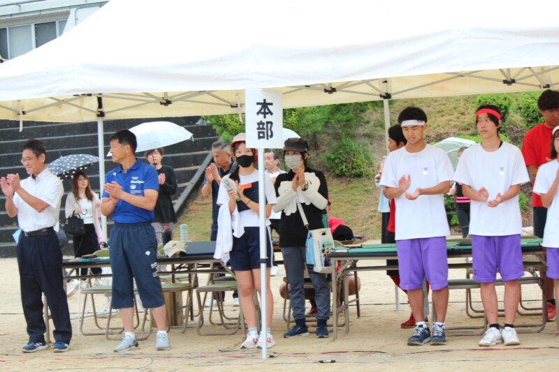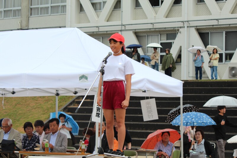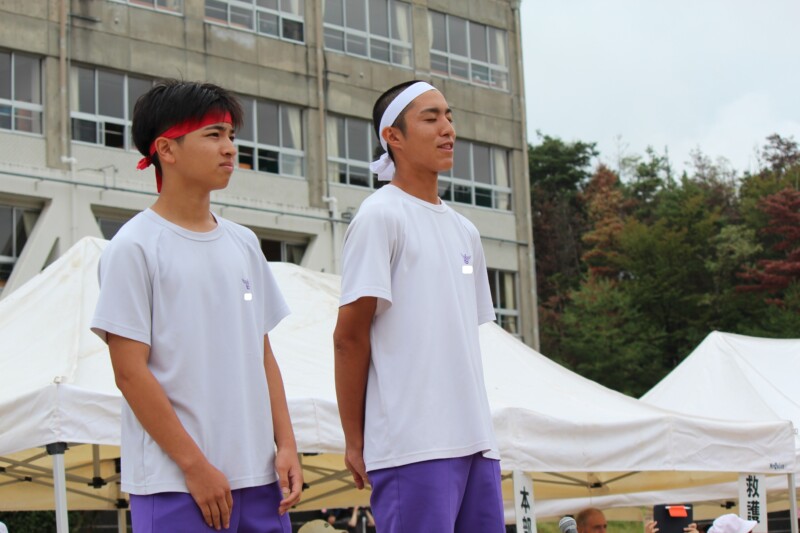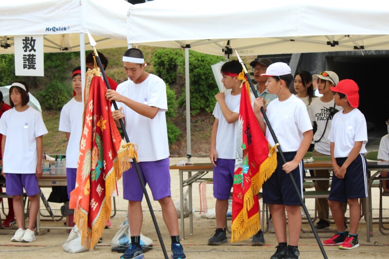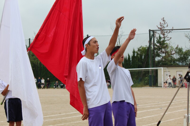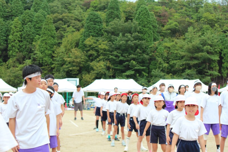 ここからは両団の団リーダーと、全校児童生徒による「いうこと一緒、やること一緒」です。小学校の児童と中学校の生徒が手をつなぐ様子もとても微笑ましかったです。