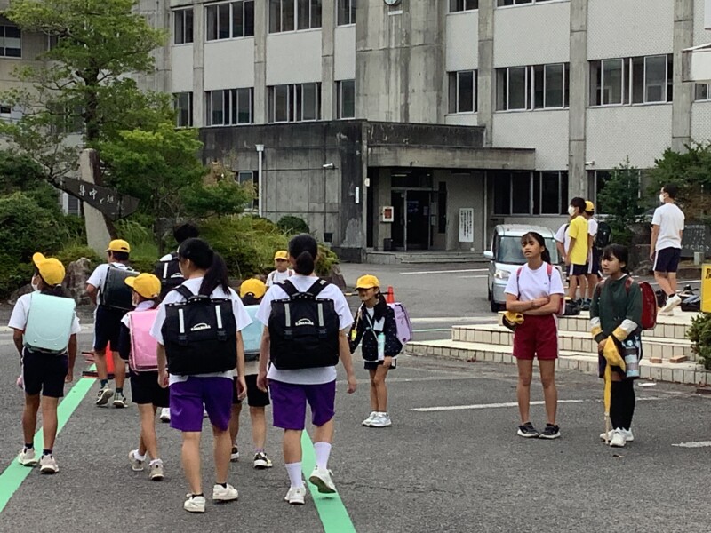 「スポーツフェスティバル」を無事に終えた翌朝のあいさつ活動の様子です。