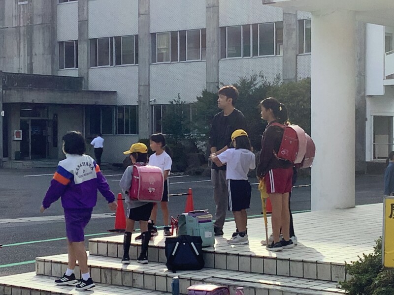 朝の登校時間の関係やお休みをした日がありましたが、誰かが必ず、門のところに立って、あるいは体育館前であいさつ活動を続けてきました。