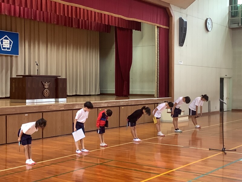始業式から今日までの半年間、毎日、あいさつ活動に立ち続けた児童たちです。
