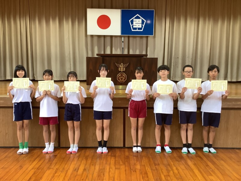 そして前期の間、児童生徒会や委員会活動で「新しい学校づくり」に向けて力を注いでくれたみなさんに感謝状を贈りました。