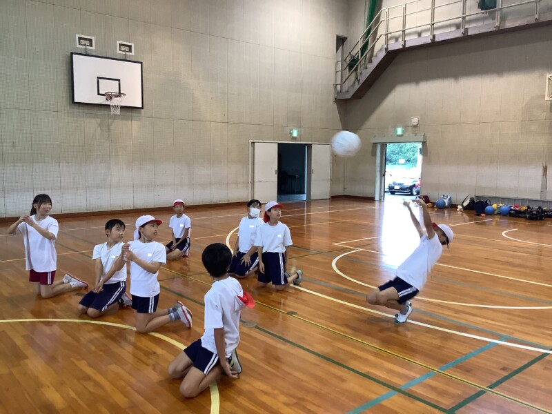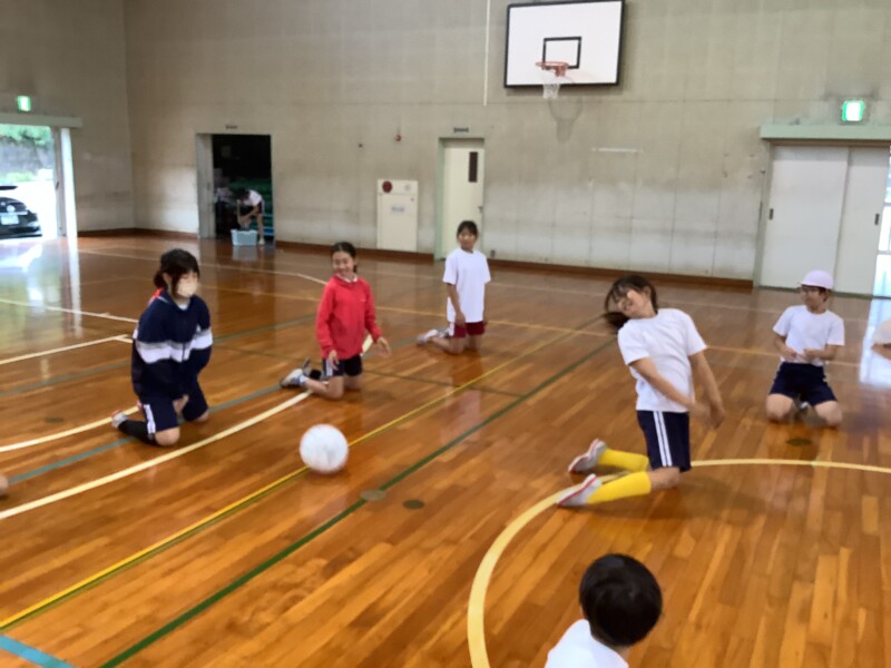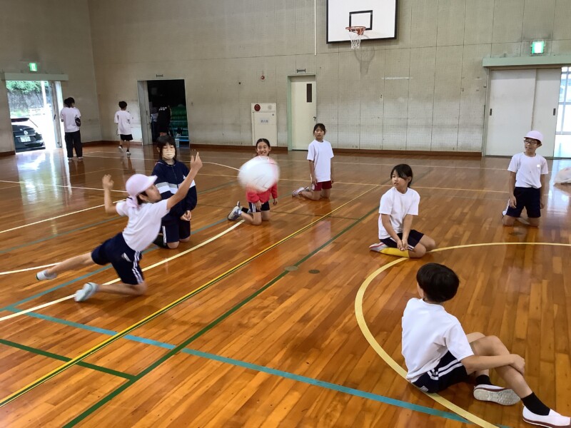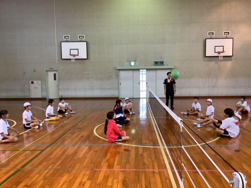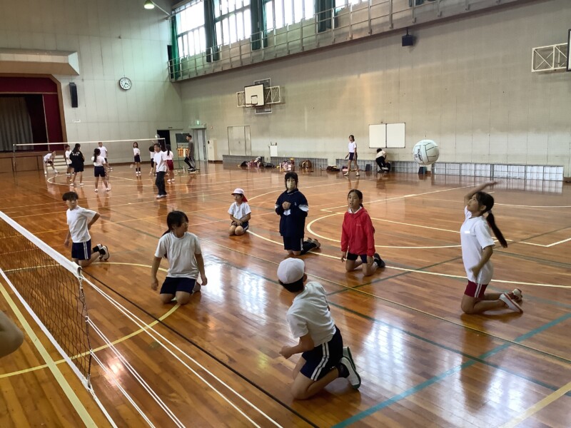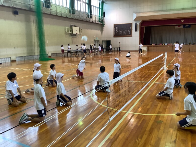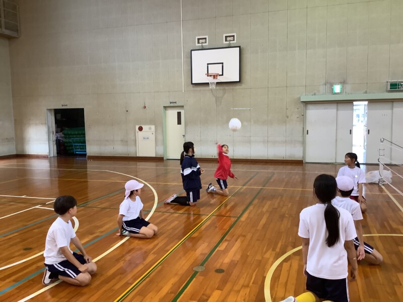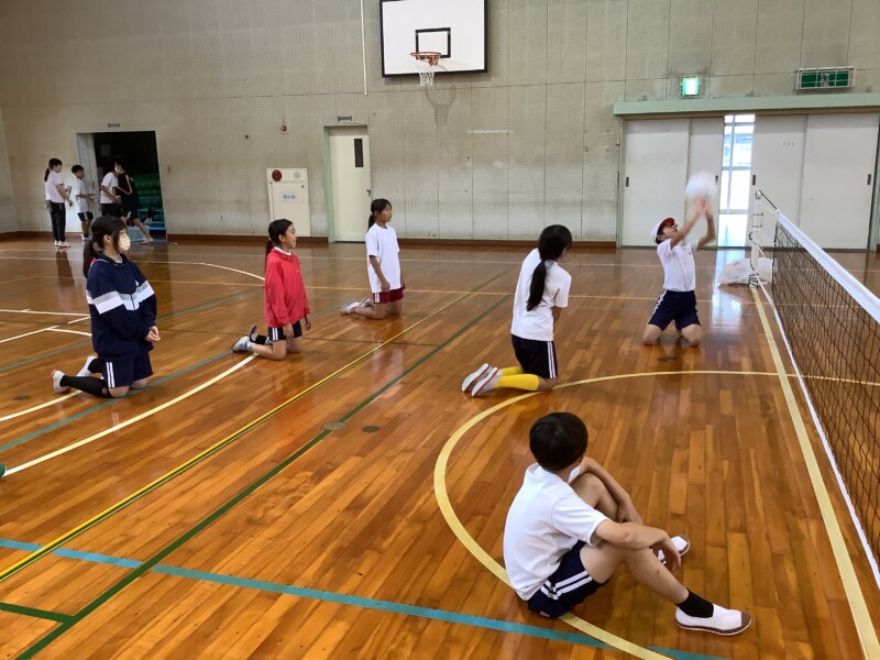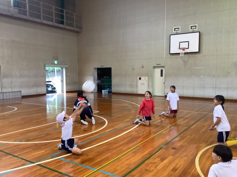 何と、「シッティングバレーボール」です。パラリンピックなどでは「パラバレー(座位)」というように表現されています。ちょうど6年生のみなさんは体育でもバレーボールに取り組む時期ですが、座ってのプレーとなると、まったく感覚が違います。