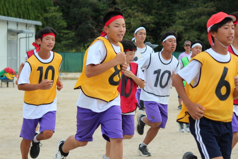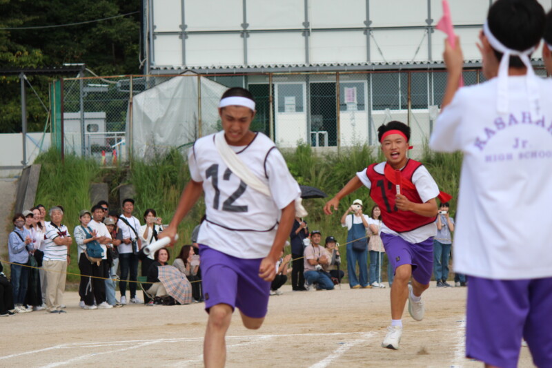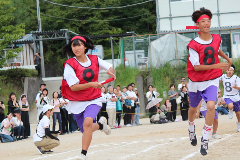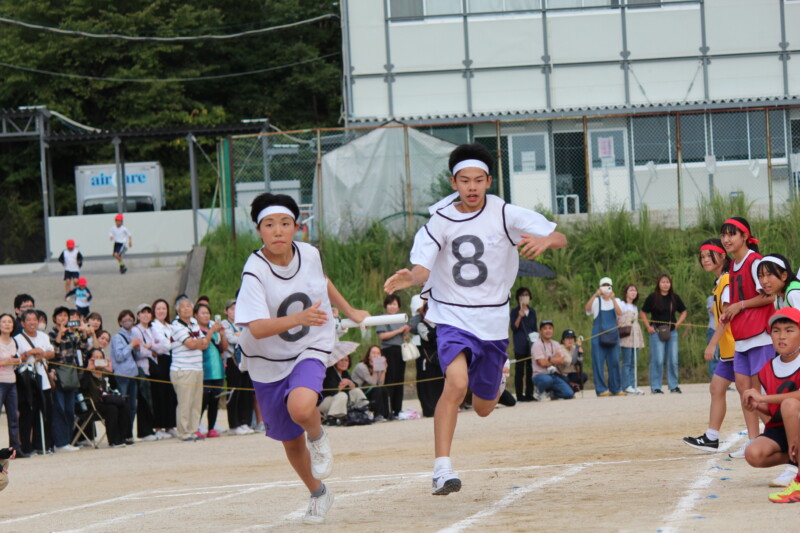 ここからは「スポーツフェスティバル」の紹介です。いよいよ午後の最後の競技、「団対抗選抜リレー」です。当日を迎える前に各団の中でのチーム決めやバトンパスの練習を行ってきました。