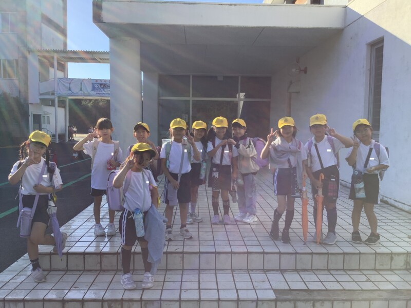 今日のあいさつ活動後の集合写真です。朝の太陽の光が神々しくフレームに入っています。今日もありがとう!