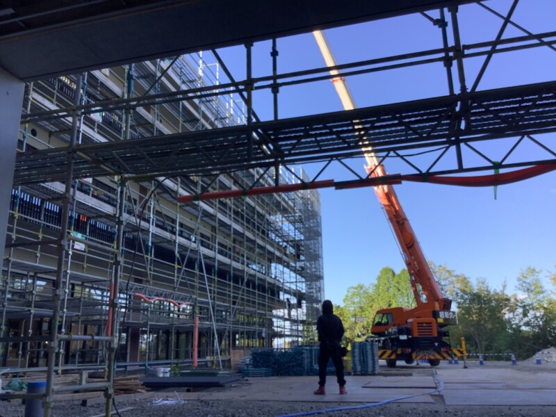 これから床材が張られてしまうと中に入ることができなくなることや、工事中の内部も、見学ができた1階部分だけに限られていますが、紹介します。