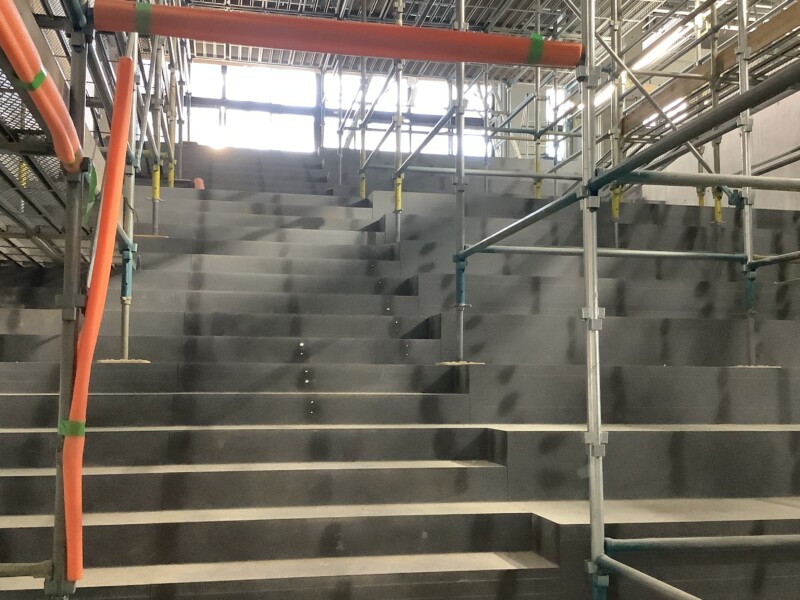 右側の段差の高い階段は合唱の発表などもできる、ちょっとしたステージにもなります。
