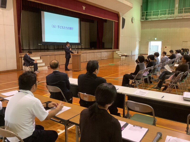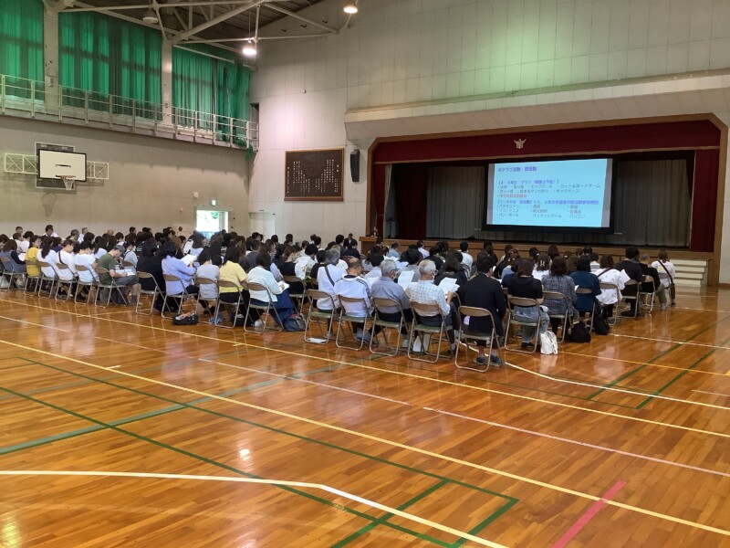 10月18日(土)には「笠原小中学校」の開校を半年後に控え、「笠原小中学校保護者説明会」を笠原中学校体育館にて開催しました。当日は100名を越える参加者があり、現在の校舎建築の状況をはじめ、「笠原小中学校」の魅力や、今の子どもたちの様子等を紹介し、新しい学校づくりに向けて情報共有の機会となりました。各ご家庭にも当日の資料を配付しておりますので、是非、ご覧ください。