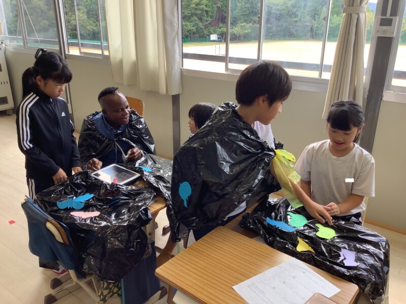 昼休みの時間には多治見市の情報誌「TAJIMIST」の取材がありました。12月号は「笠原小中学校」の特集号になる予定です。そのため、児童生徒会役員への取材や写真撮影が行われました。