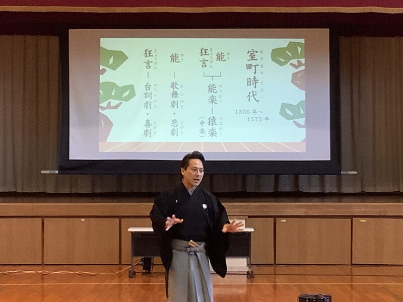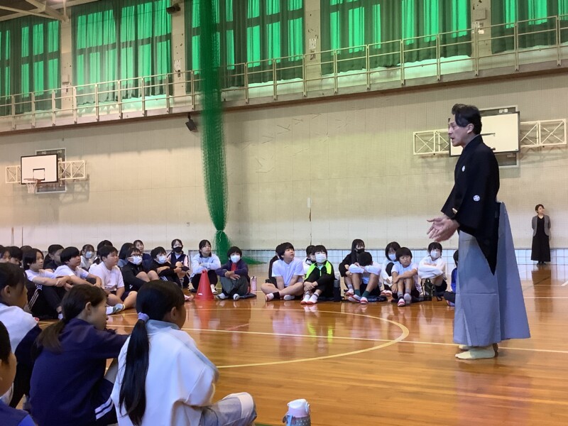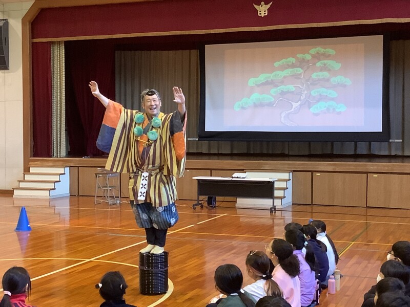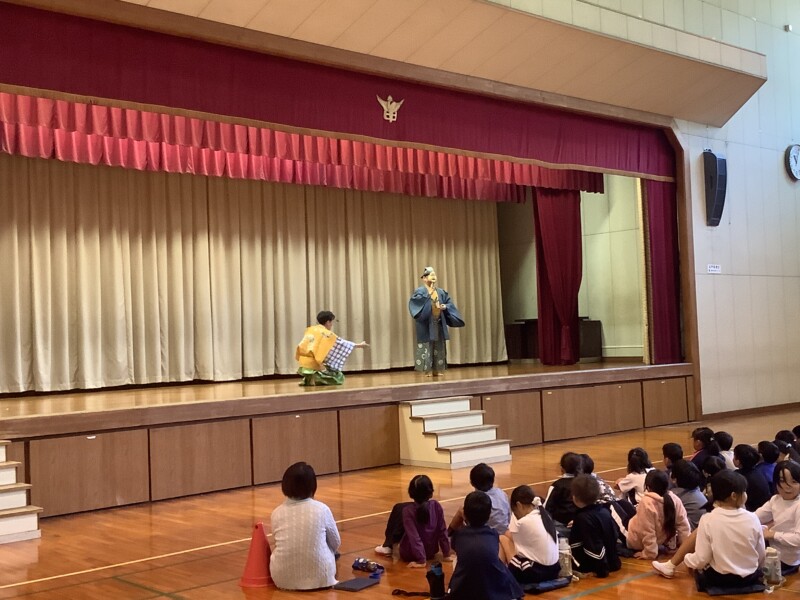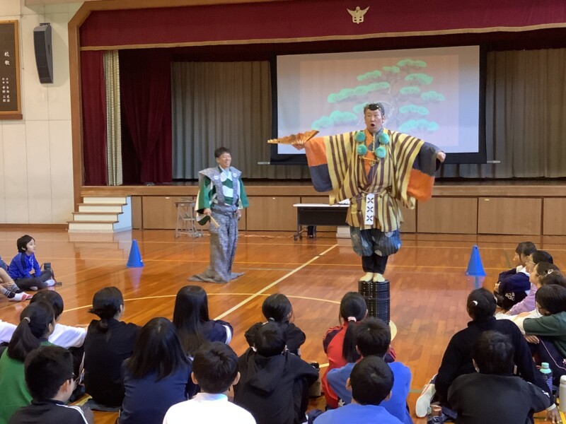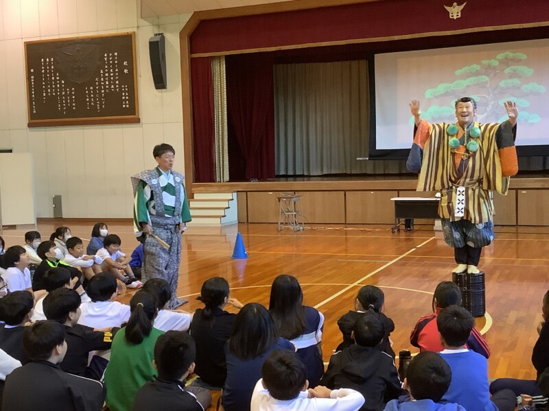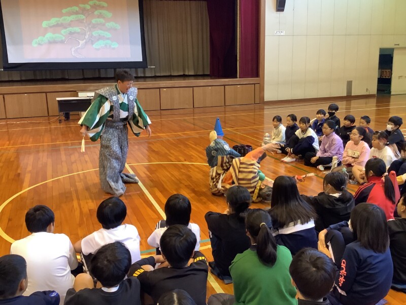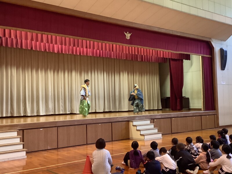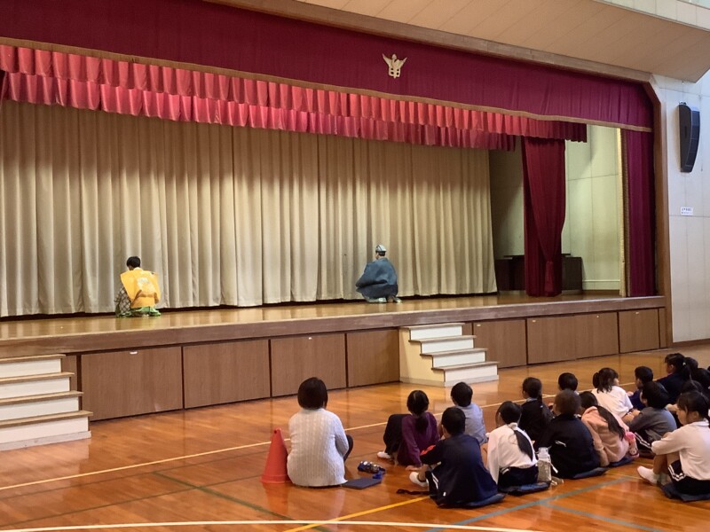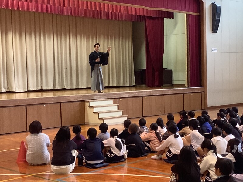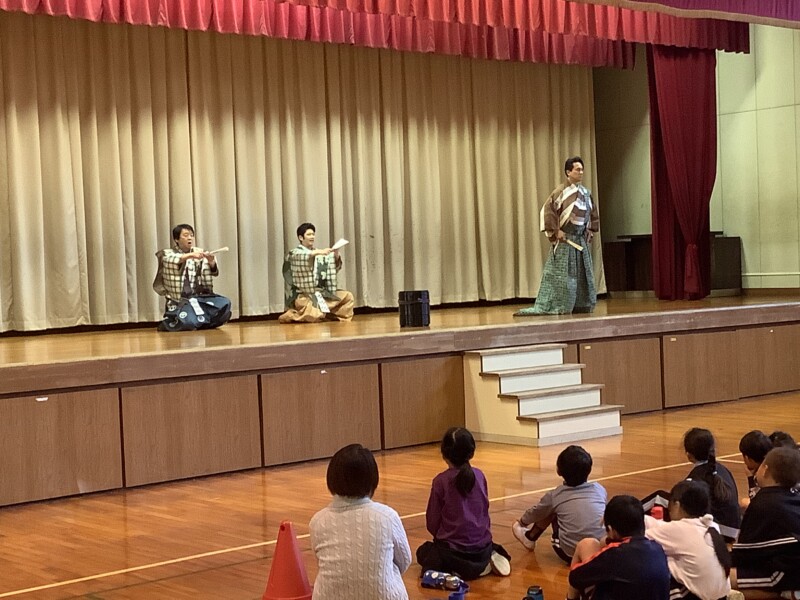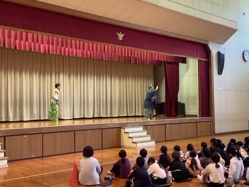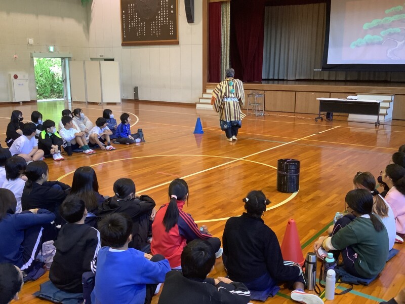 初めに、6年生が国語で「狂言」を学ぶことから、そのための特別授業を行っていただけました。「狂言」をこれまでより少し身近に感じたり、その面白さを実際に体験したりすることができました。きっとこれからの「狂言」の授業にもつながっていくと思います。