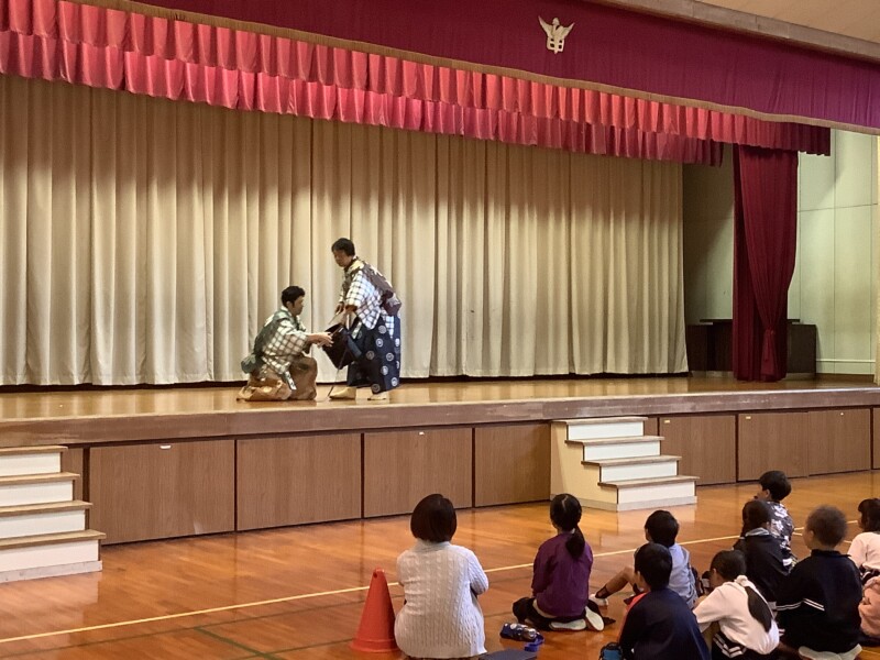 「狂言」とはいえ、小学生用にarrangeしてあったり」、言葉も少しわかりやすくしてあるために、1年生のみんなでも内容が分かり、笑い転げるシーンも…。