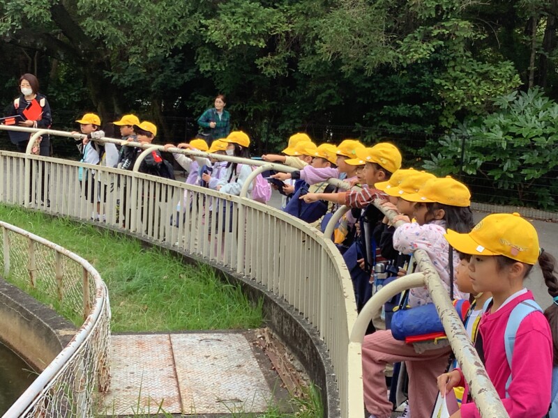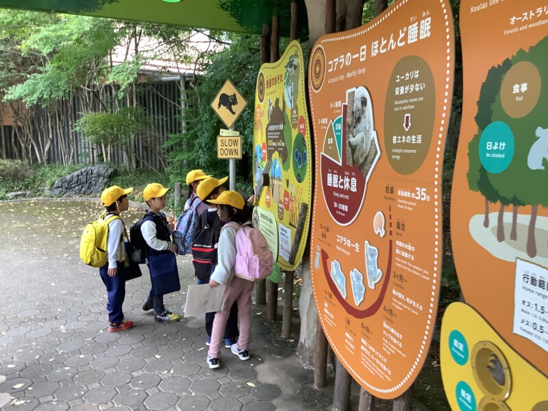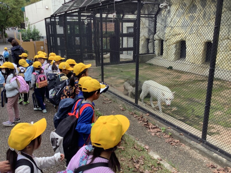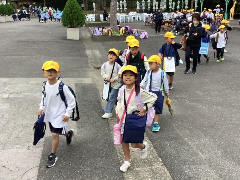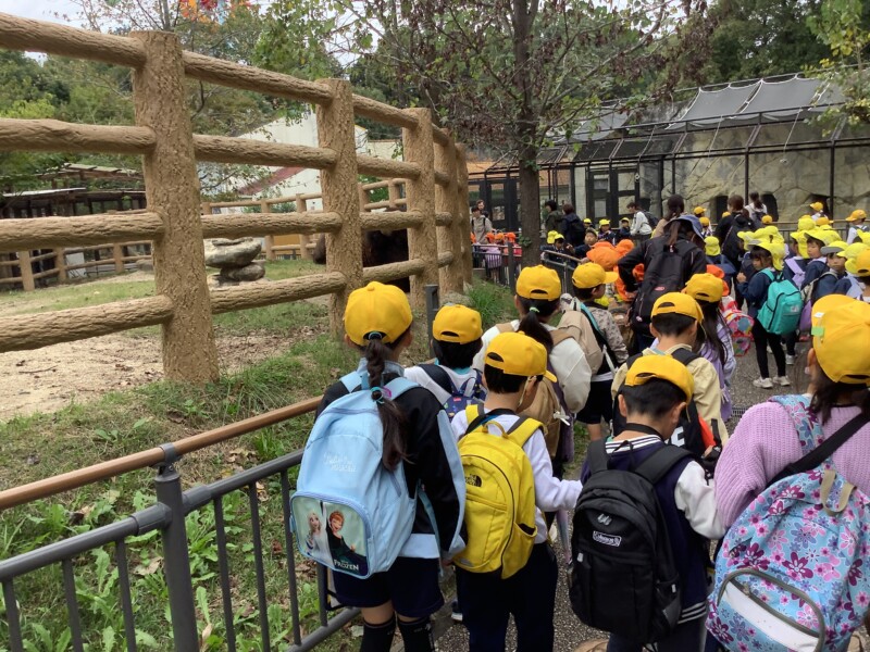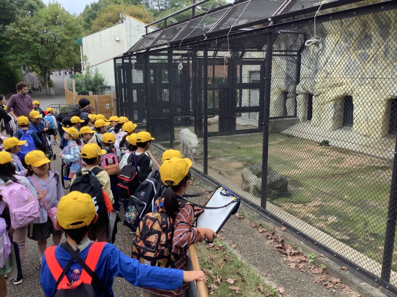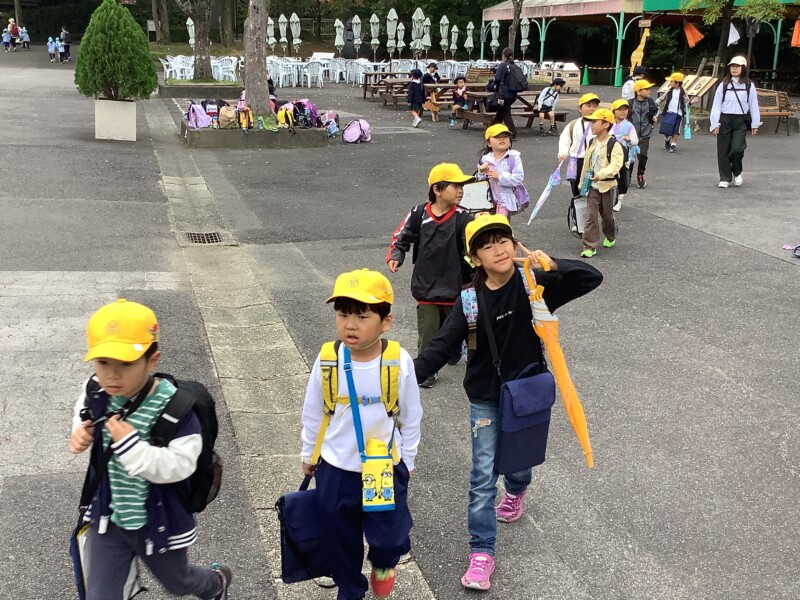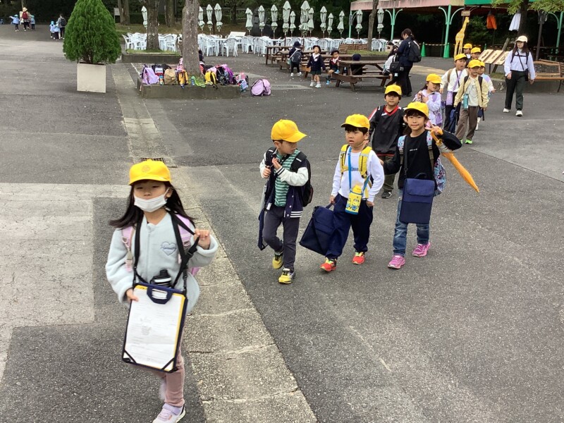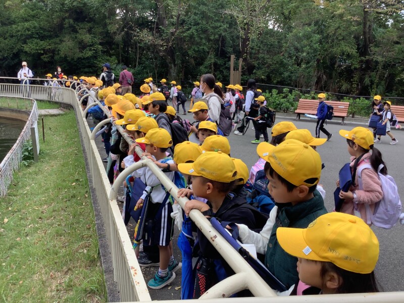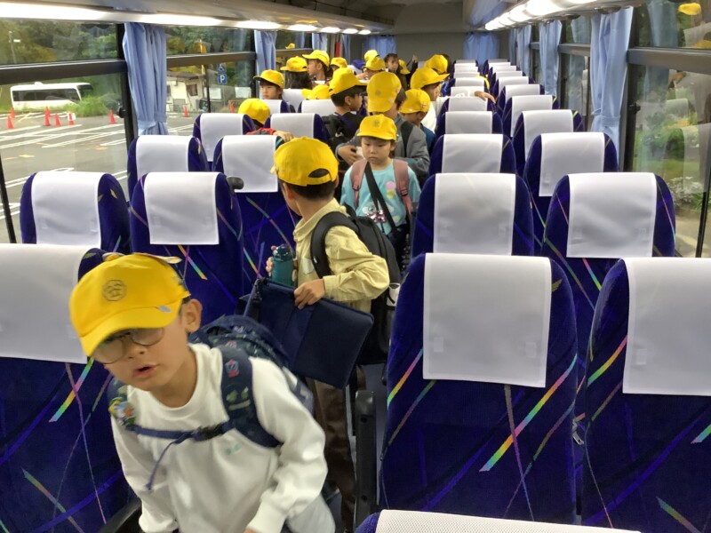 バスを降りて、学校到着後から雨がぽつぽつと降り始めましたが、園内を見学しているときは全く雨にあたることはありませんでした…。
