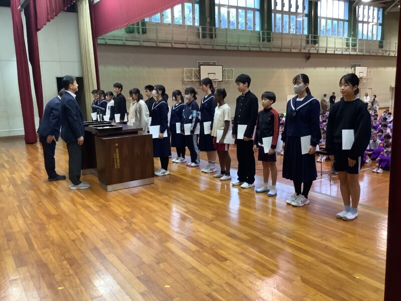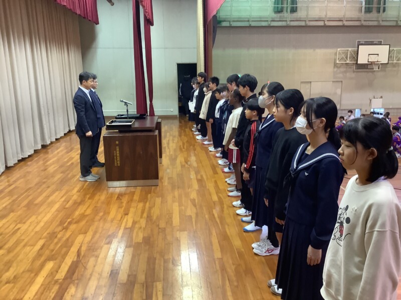 1年生の帰校後、5年生、6年生は児童生徒会役員の認証式児童生徒総会に参加。