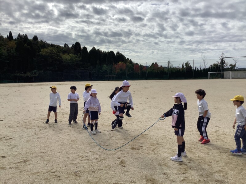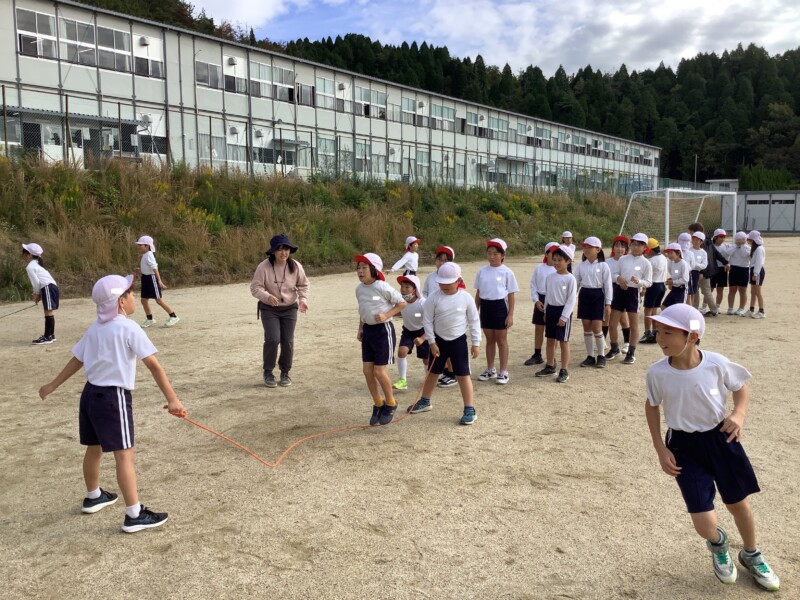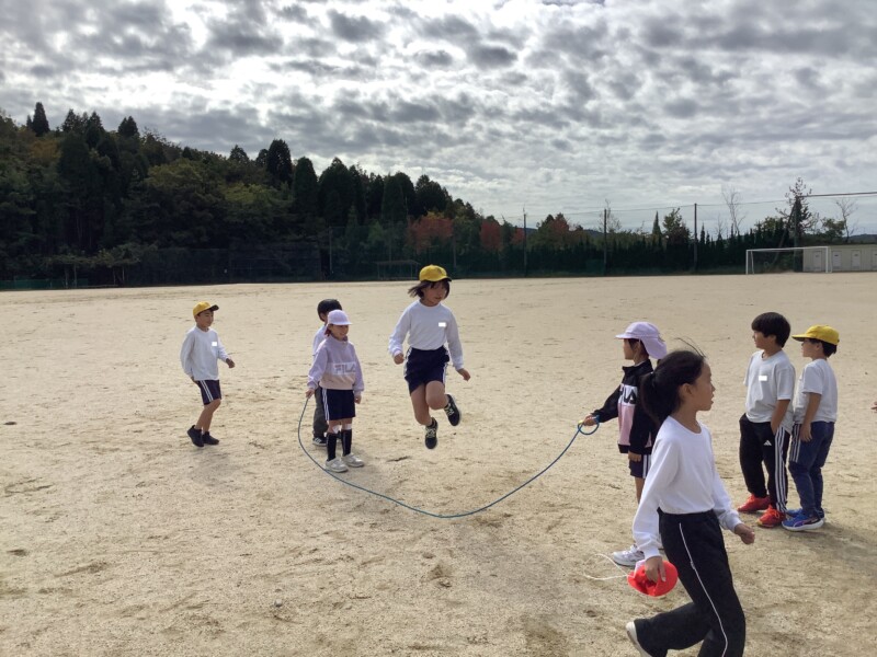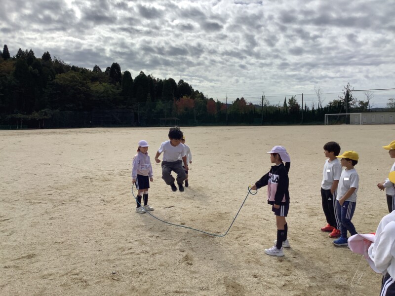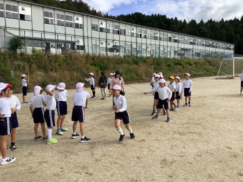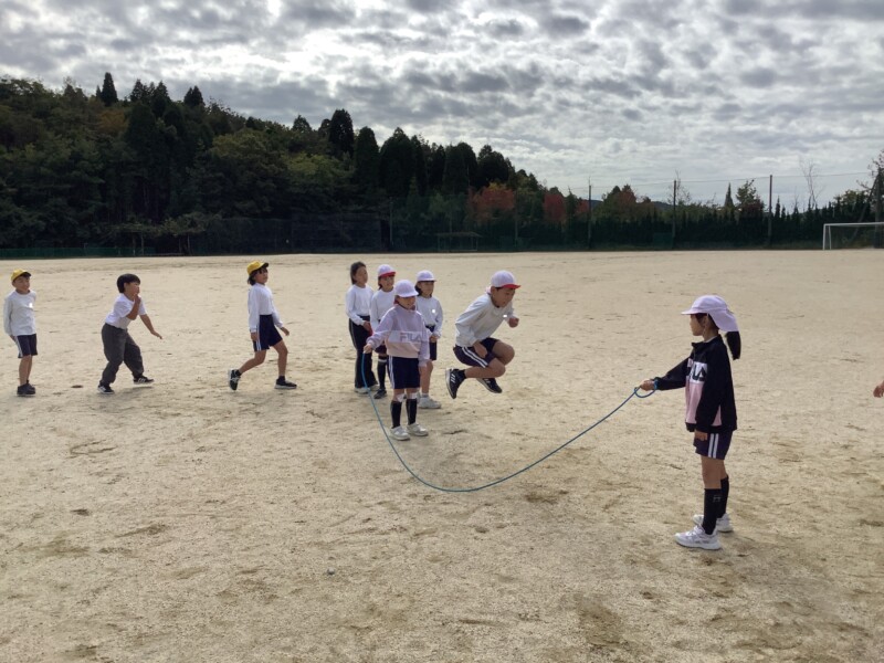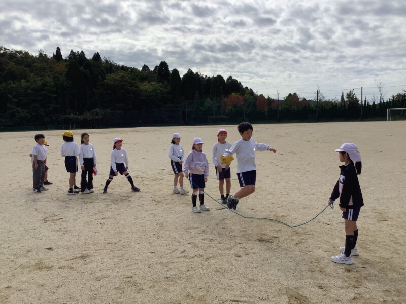 続いては3年生の体育です。長縄跳びをしていました。