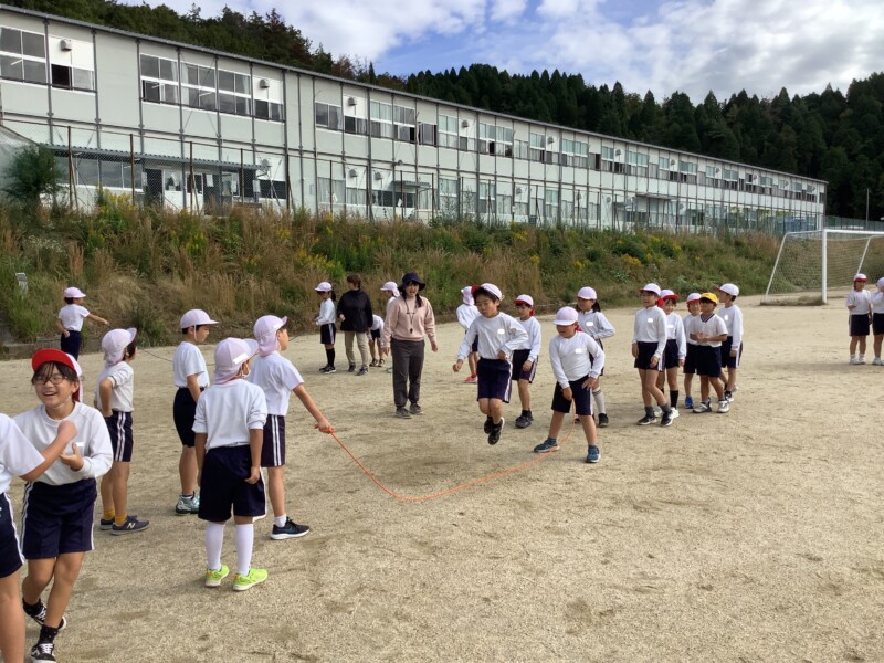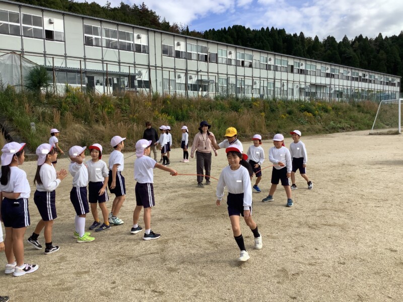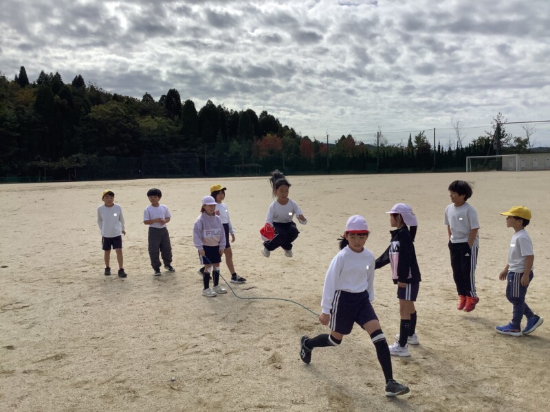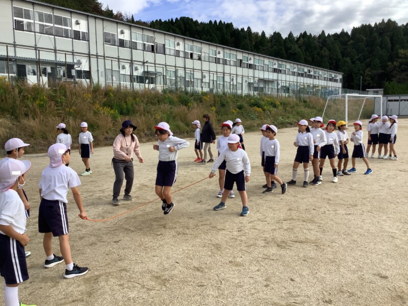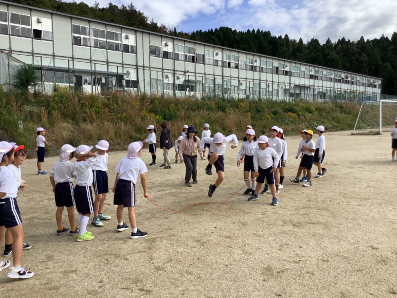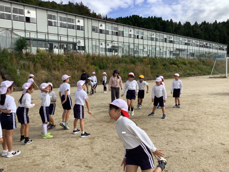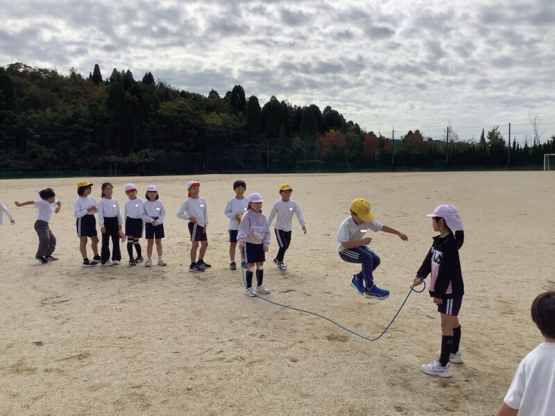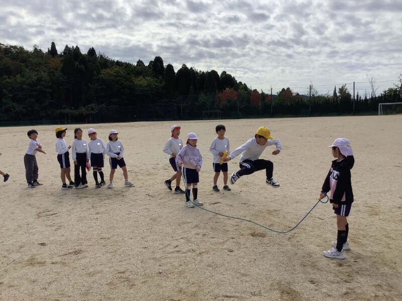 続いては3年生の体育です。長縄跳びをしていました。