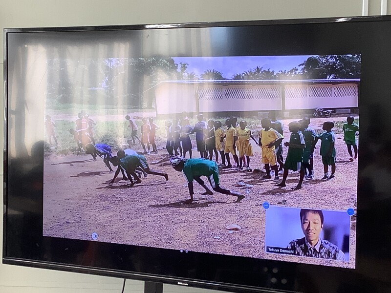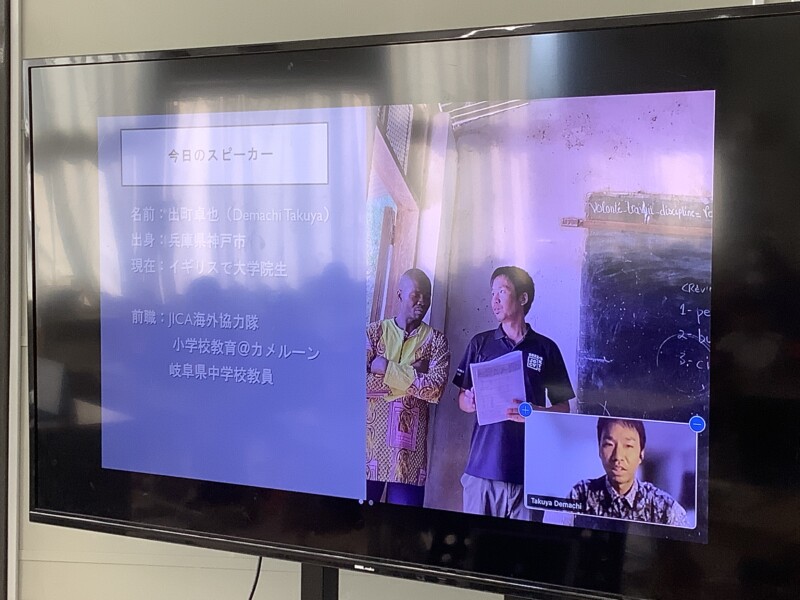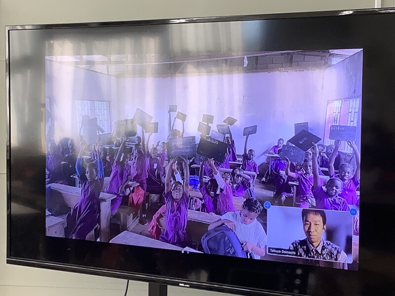 なんと午前2時30分のイギリスとオンラインで結んで、お話を聞きました。